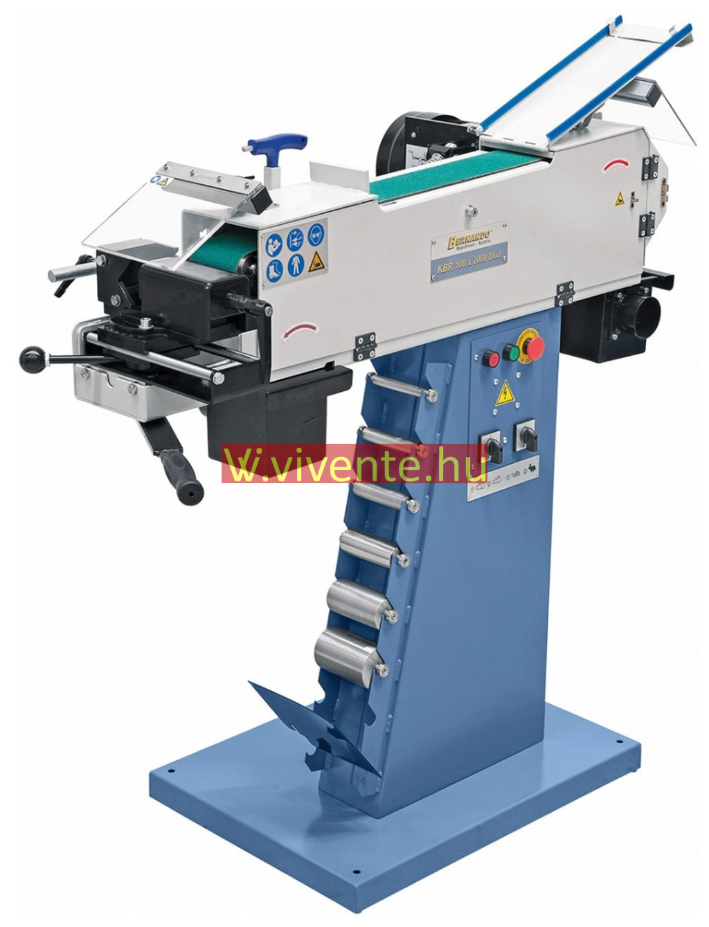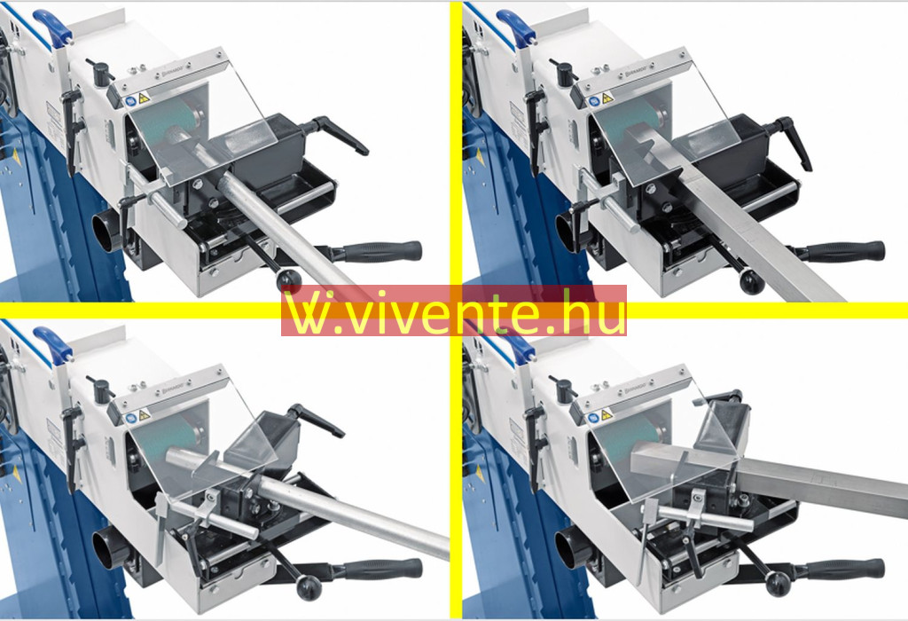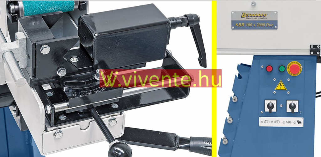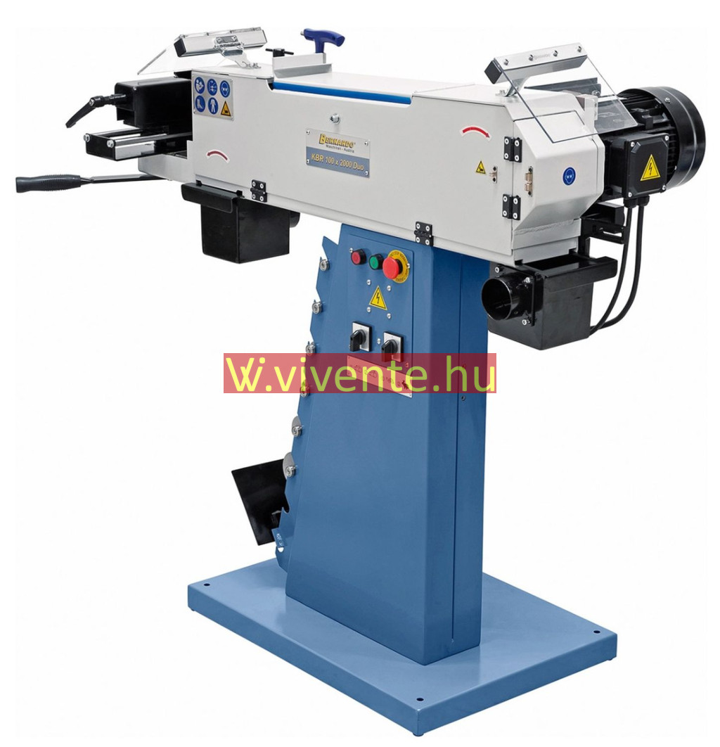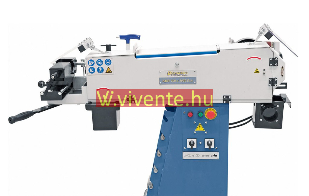 A KBR 100 x 2000 DUO egy multifunkciós csiszológép cső- és profilvégek csiszolásához az elülső oldalon, élek, felületek csiszolásához, továbbá körcsiszoláshoz a hátulsó oldalon, valamint síkcsiszoláshoz a gép felső oldalán.