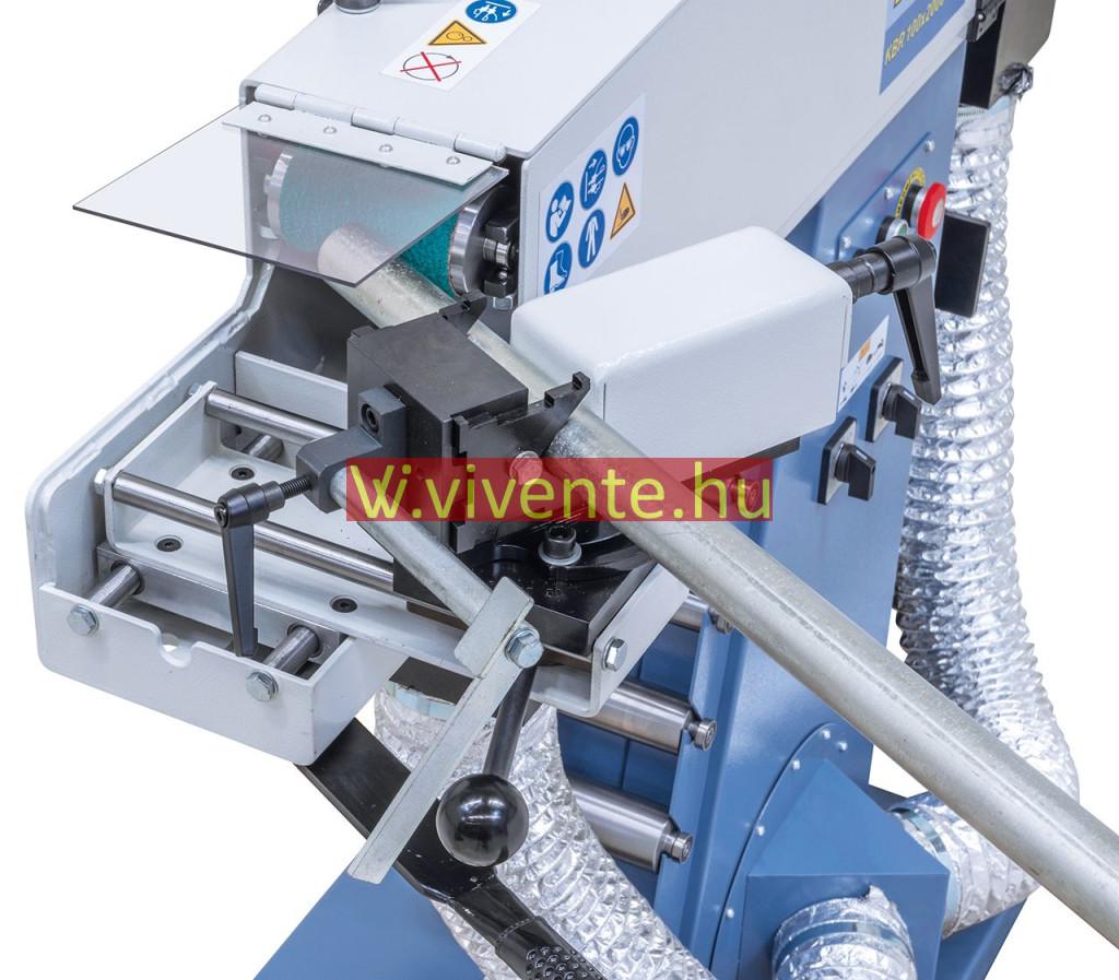 A KBR 100 x 2000 DC-2 egy multifunkciós csiszológép cső- és profilvégek csiszolásához az elülső oldalon, élek, felületek csiszolásához, továbbá körcsiszoláshoz a hátulsó oldalon, valamint síkcsiszoláshoz a gép felső oldalán.
