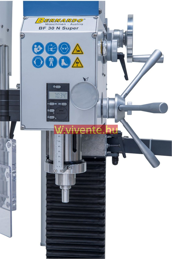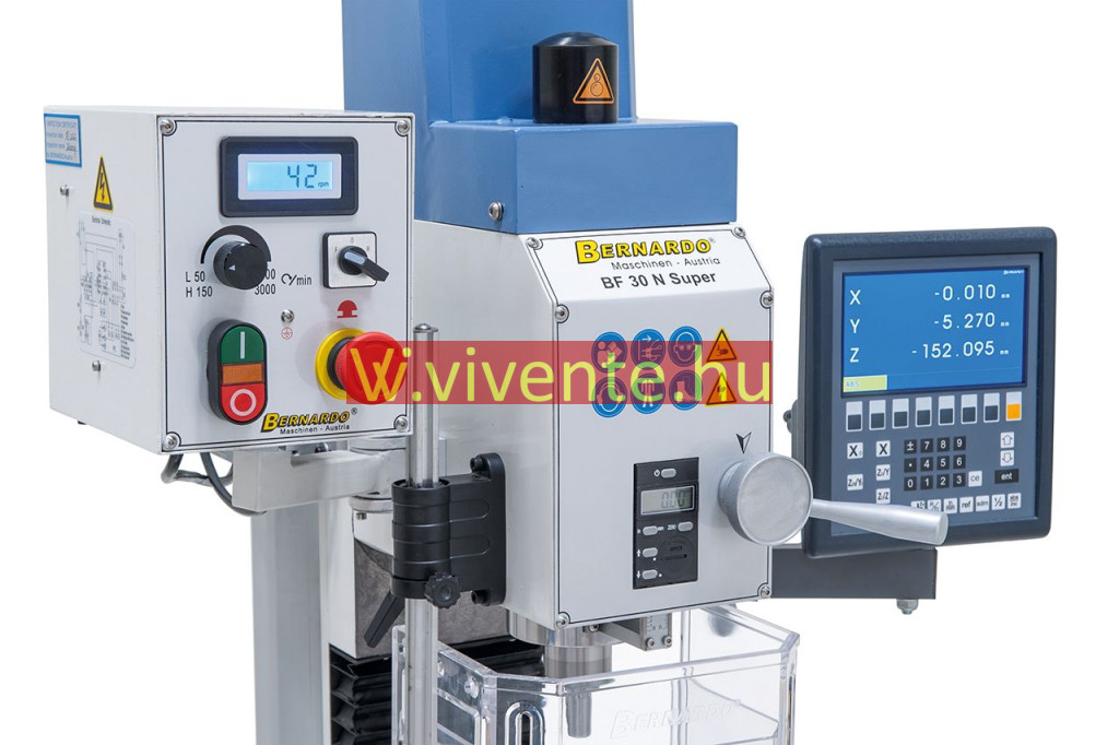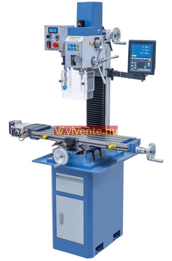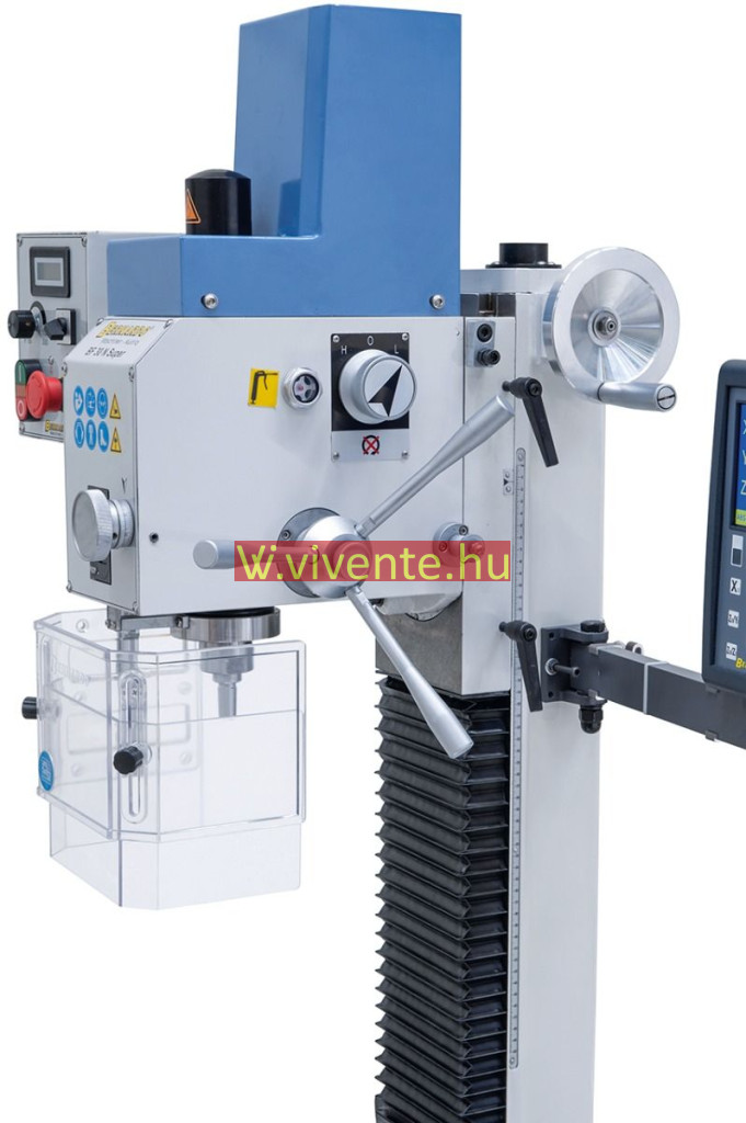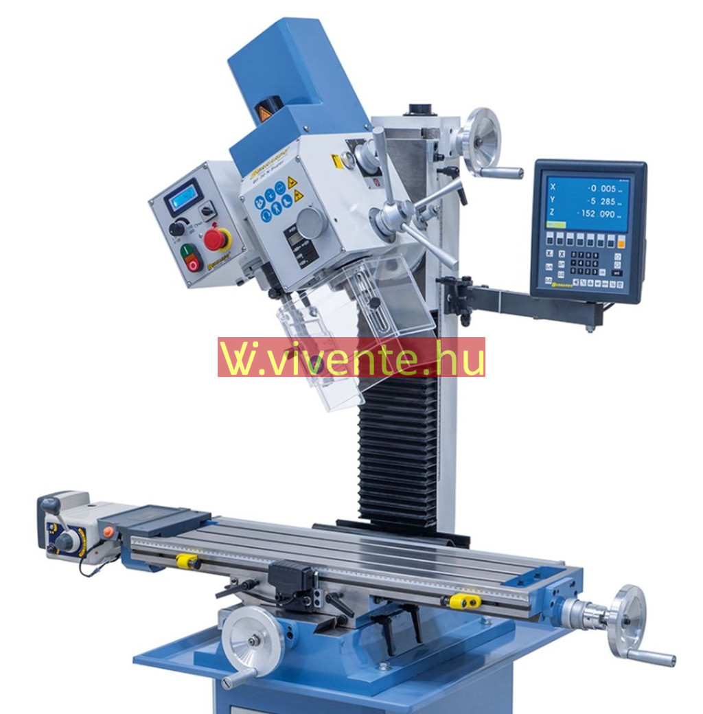A jól bevált KF 25 Vario továbbfejlesztése sorozatszerűen nagyobb orsófelvételt, nagyobb maróasztalt, valamint 2 digitális mutatót kínál fordulatszámhoz (50 - 3000 ford./perc) és fúrásmélységhez.