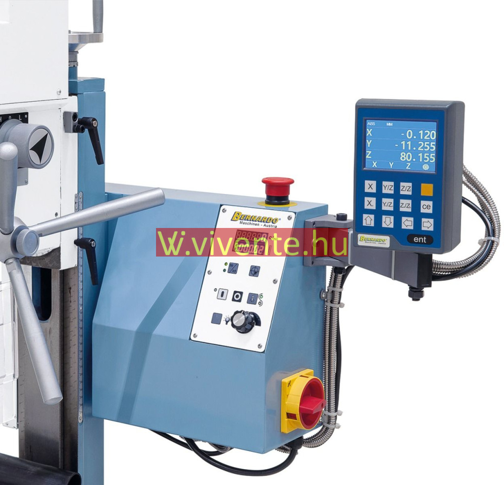 A modell fokozatmentes maróasztal-előretolással és DT 403-tengelyes digitális kijelzővel is szállítható