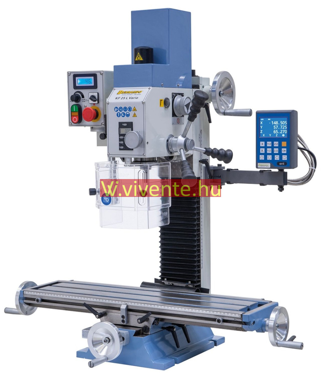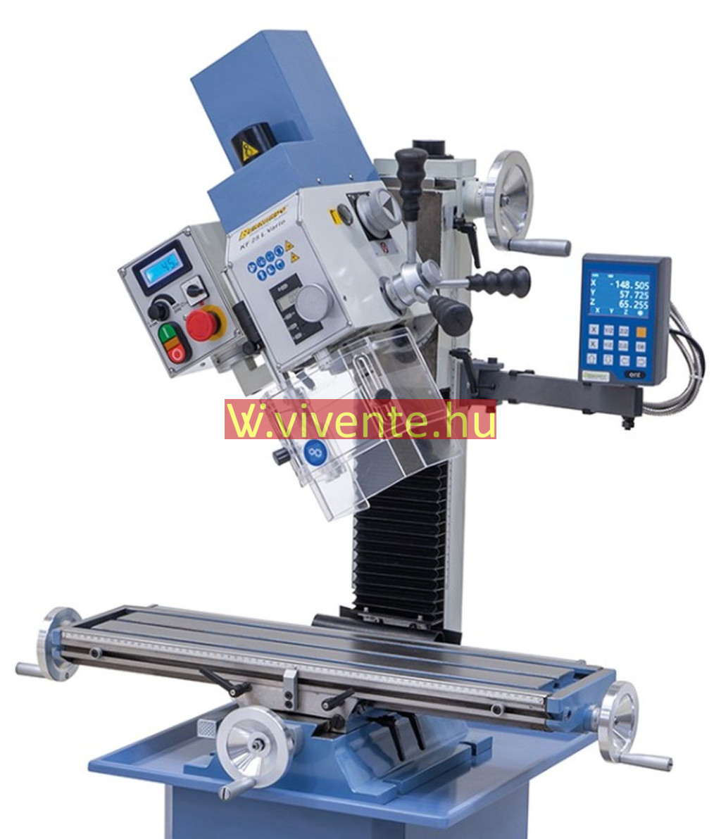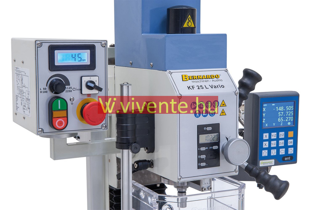 A KF 25 L Vario fúró- és marógép alapkiszerelésben digitális fordulatszám- és szegnyereg emelkedés-mutatóval felszerelt.
