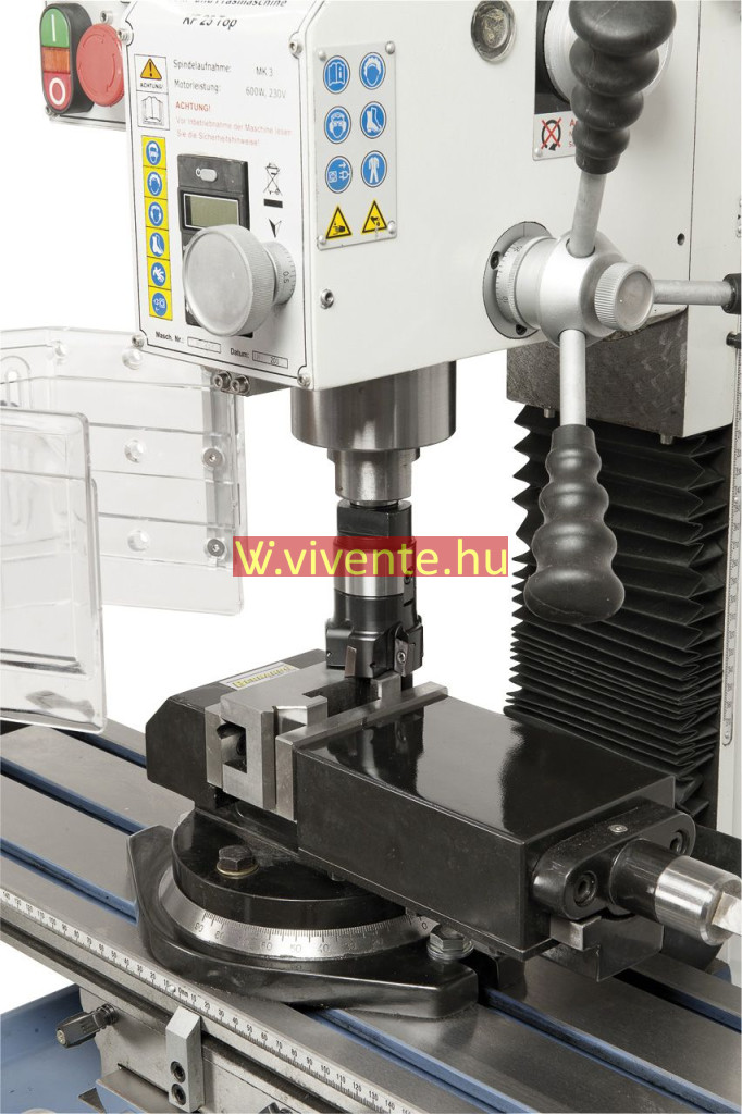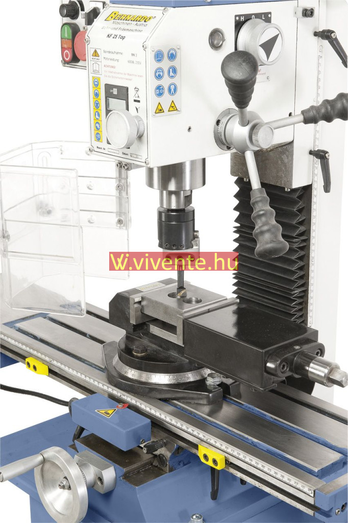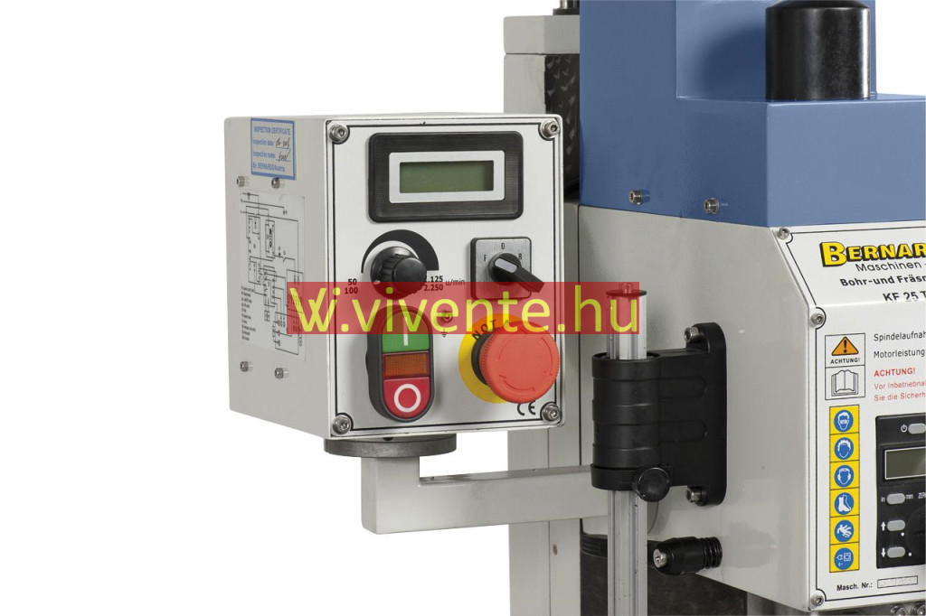 A KF 25 L Vario fúró- és marógép alapkiszerelésben digitális fordulatszám- és szegnyereg emelkedés-mutatóval felszerelt.