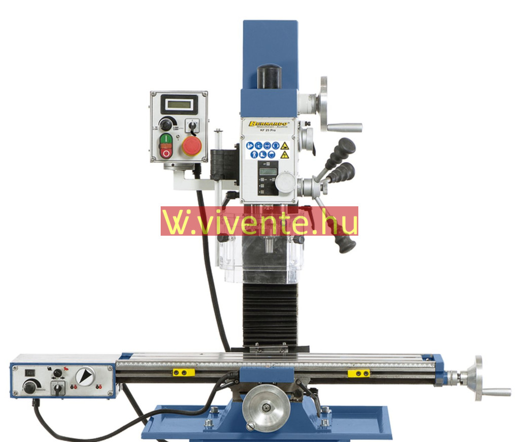 A KF 25 Pro alapkiszerelésben digitális fordulatszám- és szegnyereg emelkedés-mutatóval felszerelt és pótlólag 490 mm-es eljárási távot kínál az x-tengelyen.
