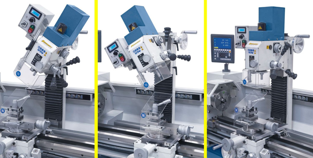 Fúrás, marás és esztergálás a legkisebb helyen, sorozatszerűen fúrásmélység- és fordulatszám digitális mutatóval a kényelmes munkához, valamint egy nagy orsófurattal ellátott, minden egy gépben központosul.