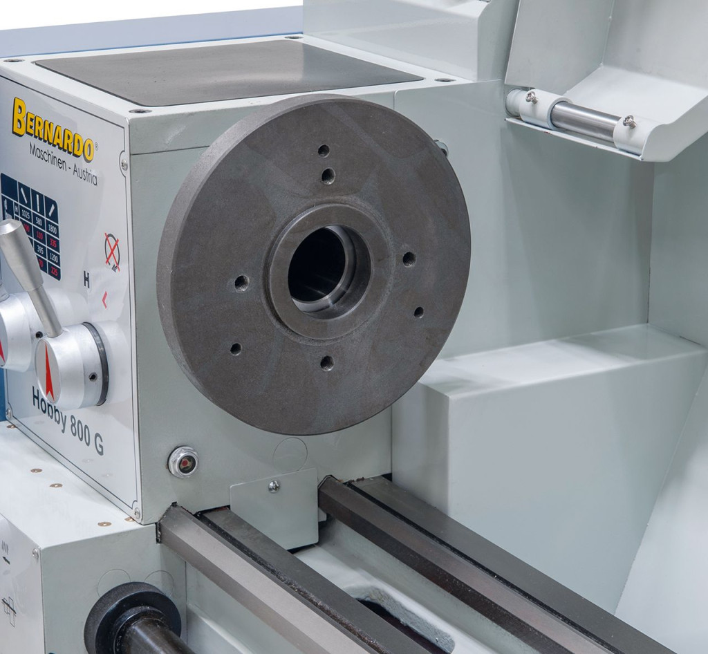 A Hobby 800 G esztergagép alapfelszereltségéhez tartozik egy ólomcsavar menetvágáshoz, ill. az automatikus hosszanti- és haránt előtoláshoz.