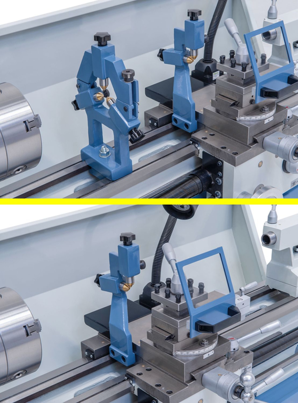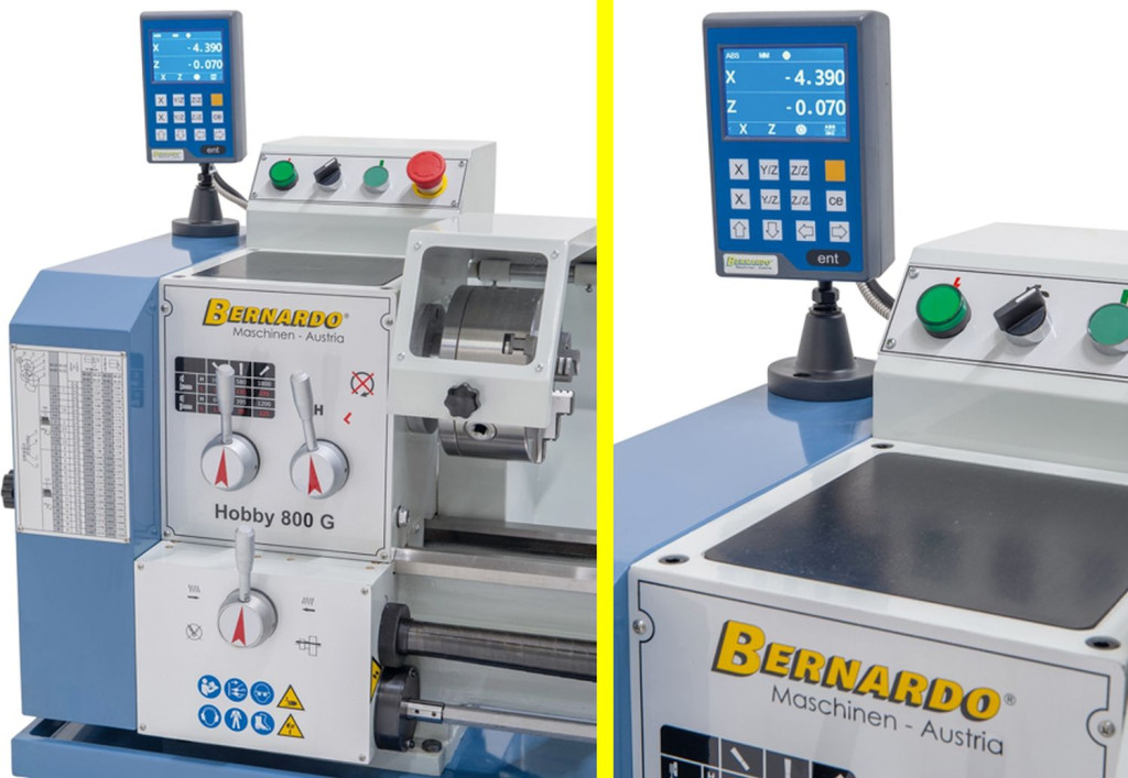 A Hobby 800 G esztergagép alapfelszereltségéhez tartozik egy ólomcsavar menetvágáshoz, ill. az automatikus hosszanti- és haránt előtoláshoz.