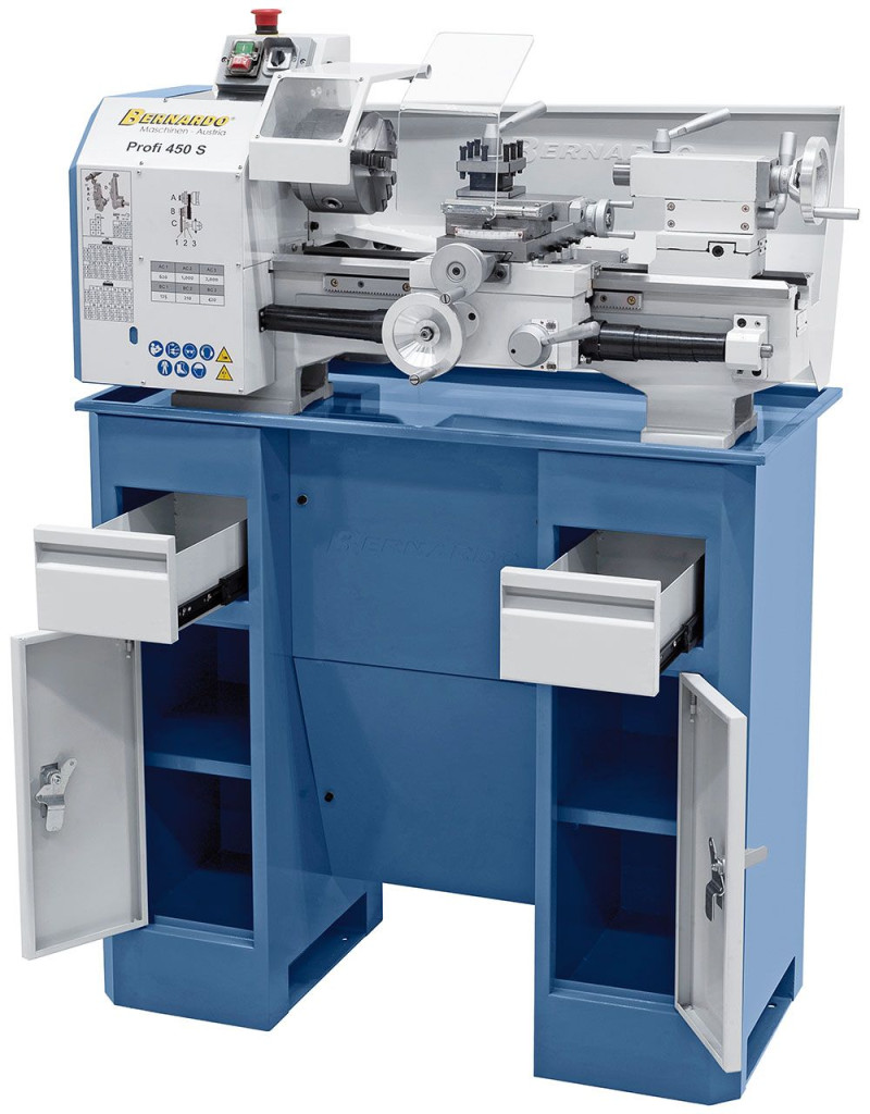 A Profi 450 S kompakt vezetőorsós esztergagép modern felépítésével és magas fordulatszámhoz tervezett nagy teljesítményű hajtómotorjával tűnik ki.