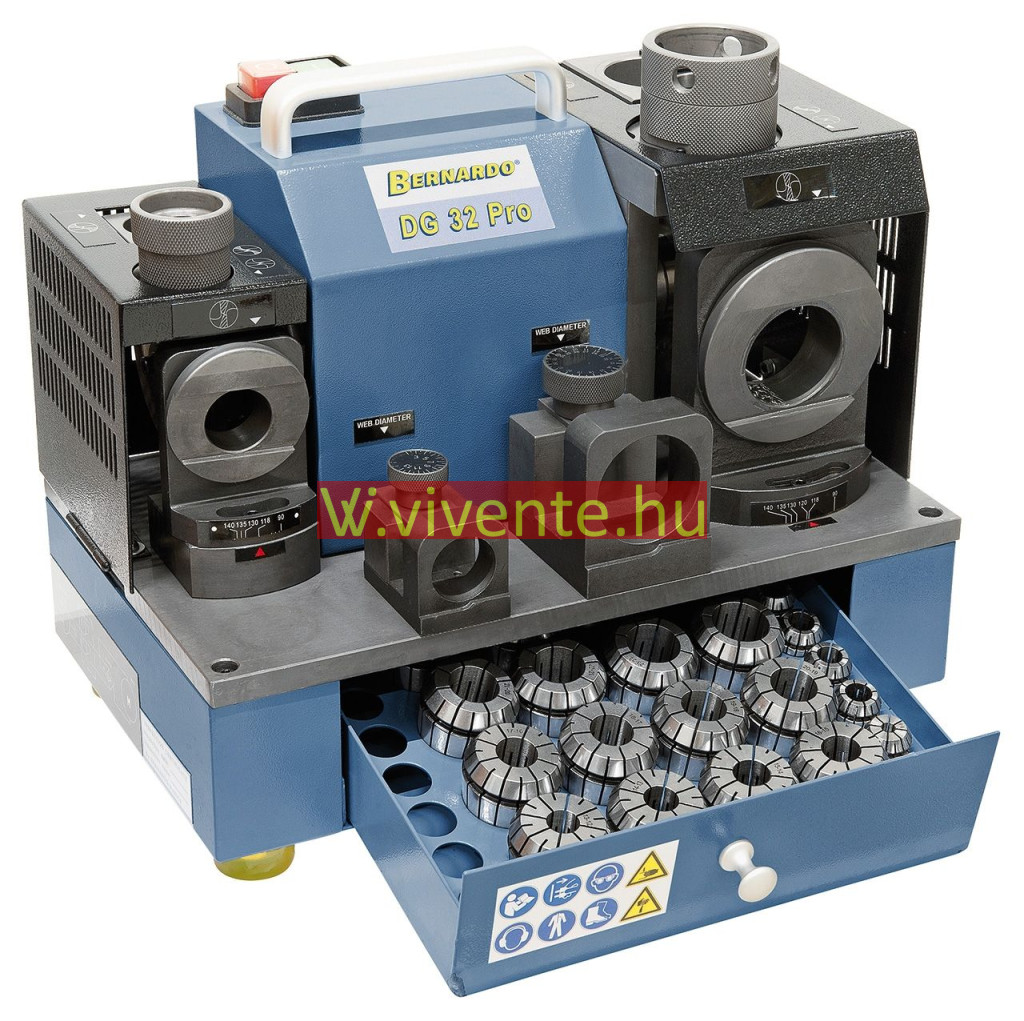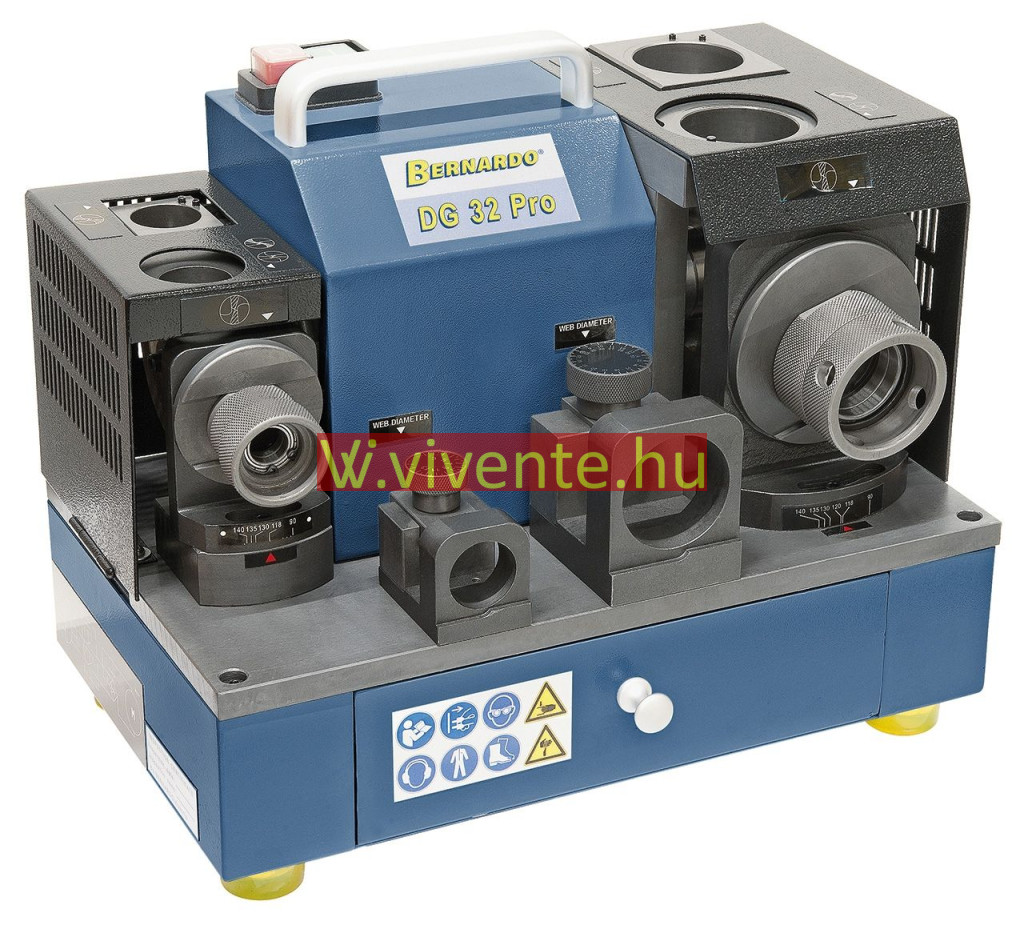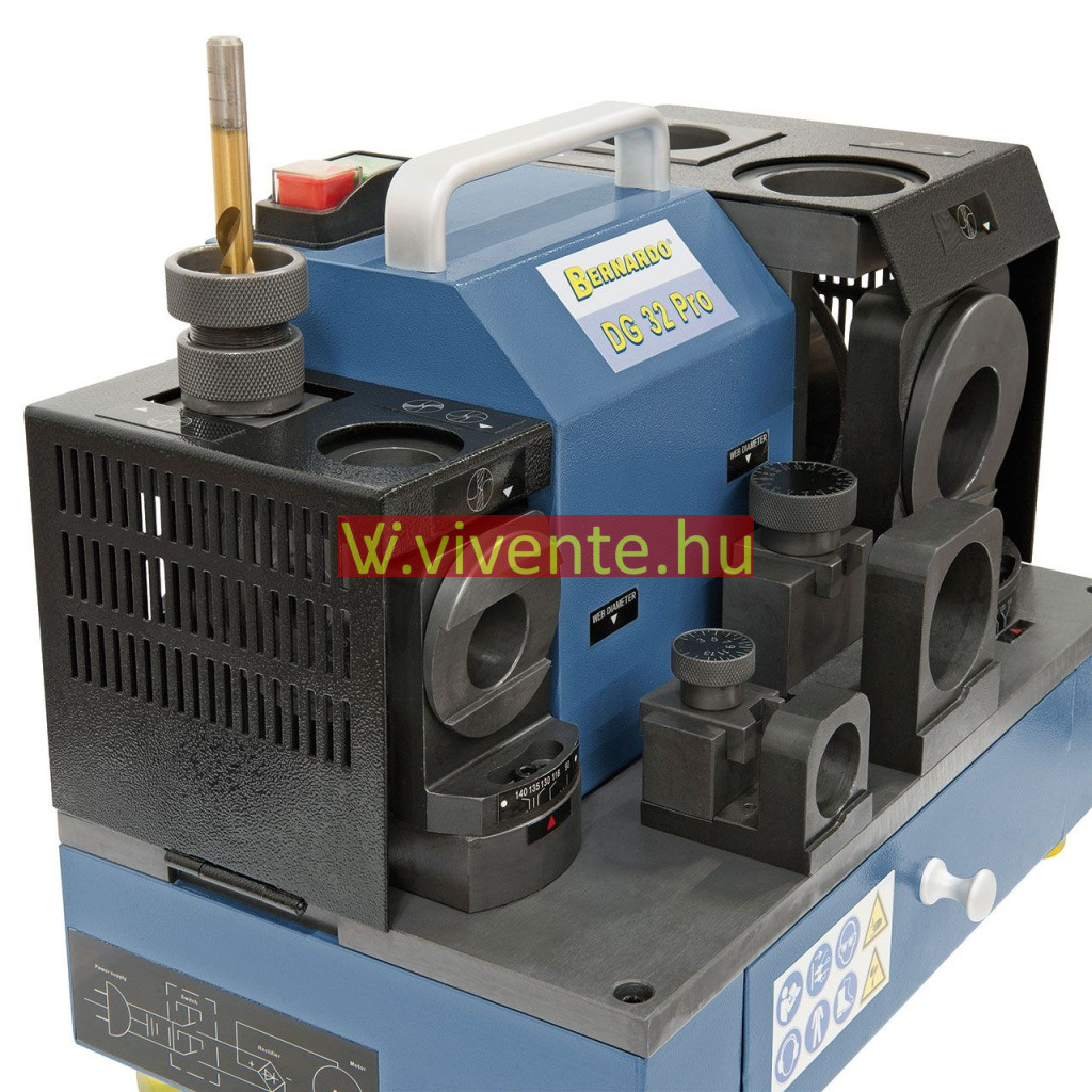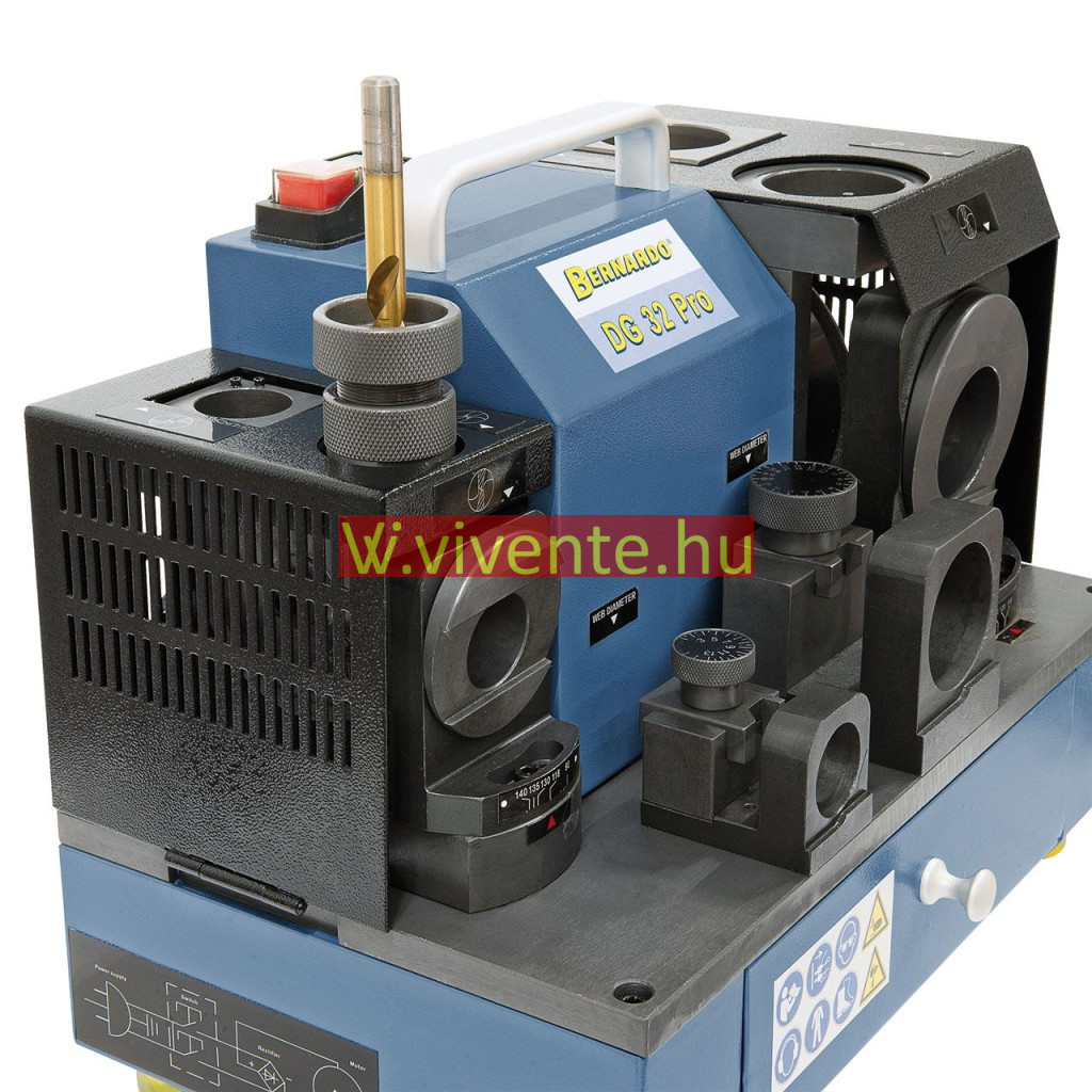 A DG 32 Pro fúró köszörűgép az összes ismert dupla vágóélű HSS, kobalt vagy keményacél és annak megfelelő spirálfúróhoz alkalmas 2 - 32 mm-es méretig.