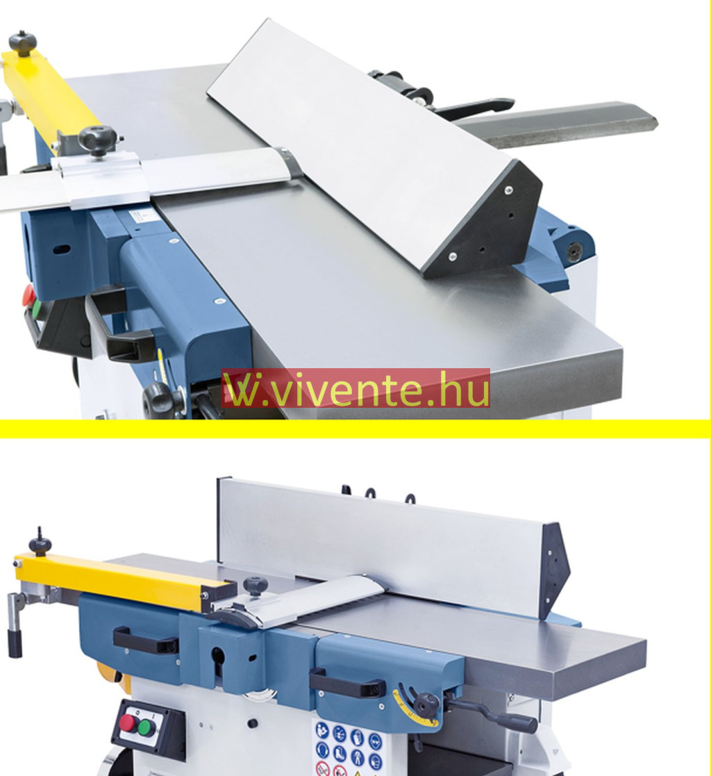 Számos védőberendezés: Be-Ki-kapcsoló alsófeszültség-kioldóval, gyalutengely-védelem CE szerint, végálláskapcsoló a véletlen bekapcsolás ellen.