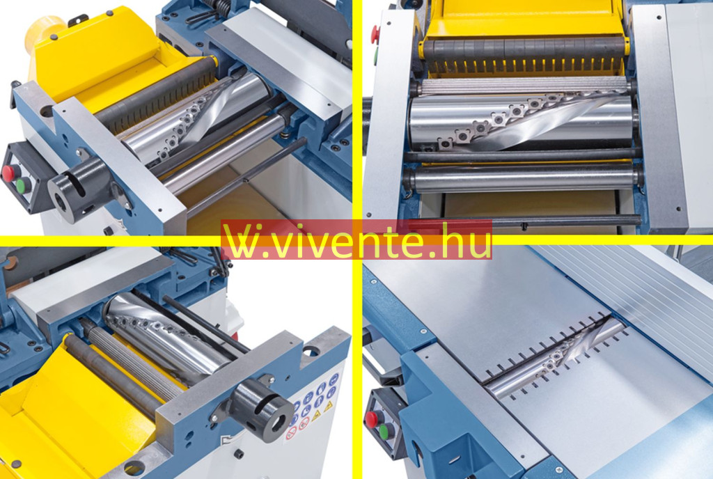 A zajterhelés csökkentése (kb. 50%) az alapfelszereltségben hozzátartozó spirálkéses gyalutengelynek köszönhetően, és akár 20-szoros vágóél-élettartam (a négyszeresen használható HM fordítható lapkák révén)