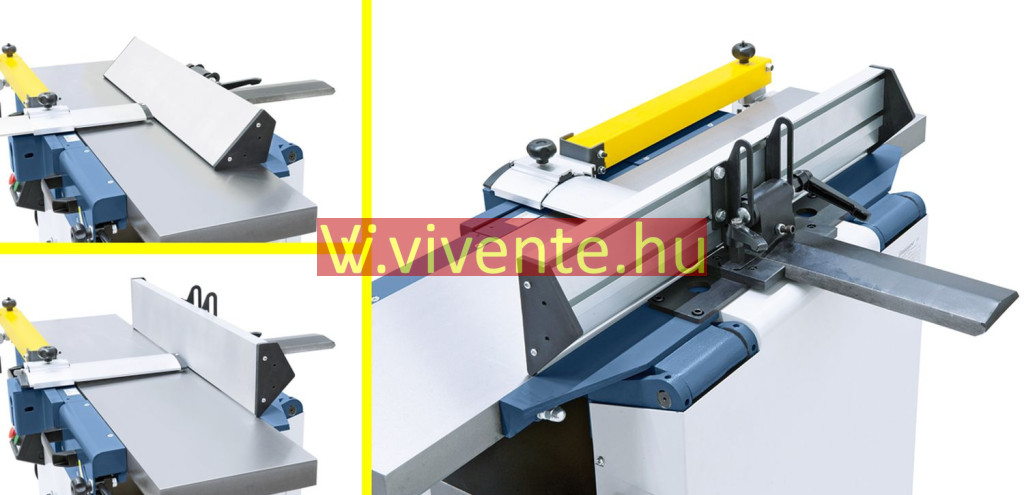 Számos védőberendezés: Be-Ki-kapcsoló alsófeszültség-kioldóval, gyalutengely-védelem CE szerint, végálláskapcsoló a véletlen bekapcsolás ellen.