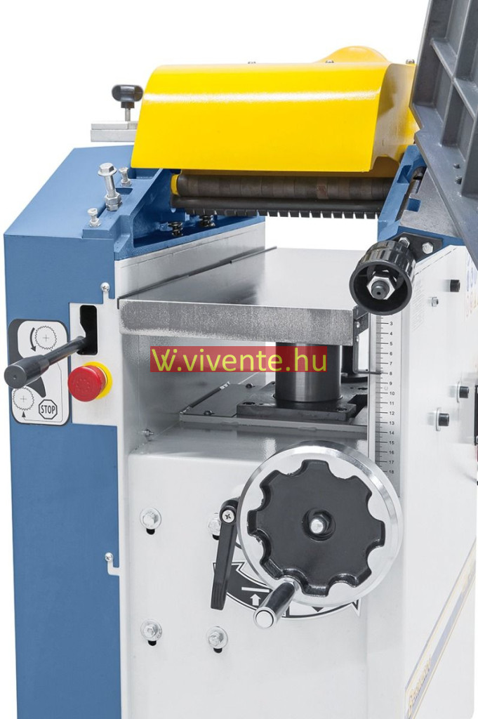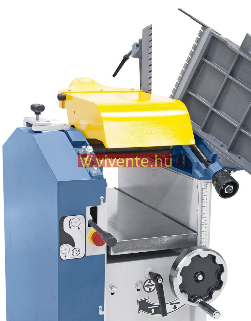 A vastagsági asztal központos centrális vezetéssel, valamint az elcsavarodásmentes egyengető asztalok pontossági gyalulást biztosítanak.