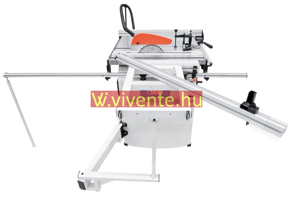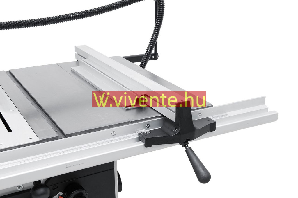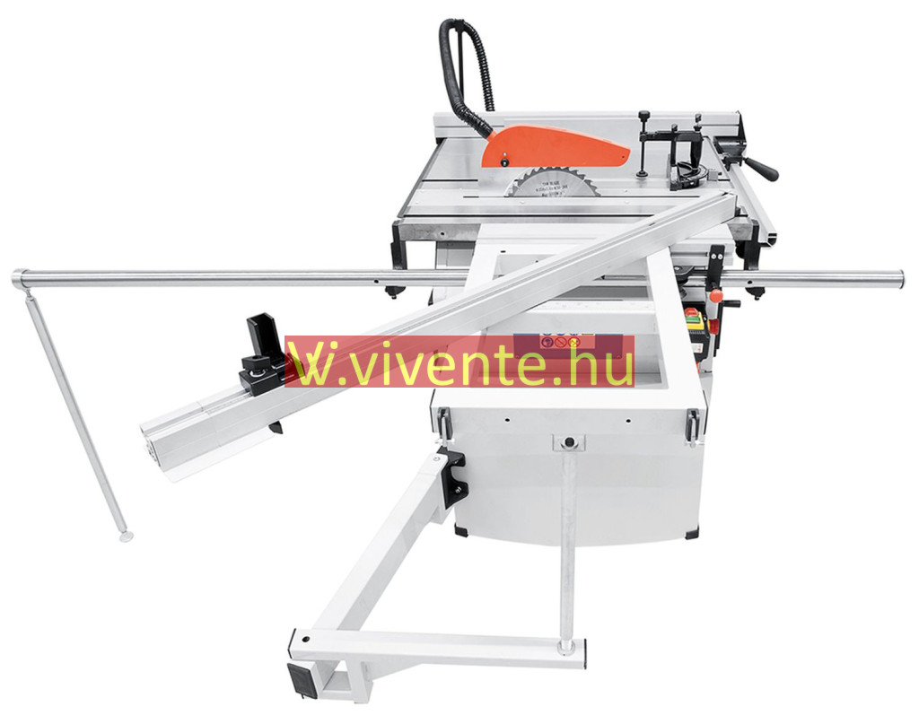 Kihúzható teleszkópos ütköző (2000 mm-ig) a kinyúló-konzolasztalra előre és hátra szerelhető, fokozatmentesen elfordítható 90° -tól 45° -ig