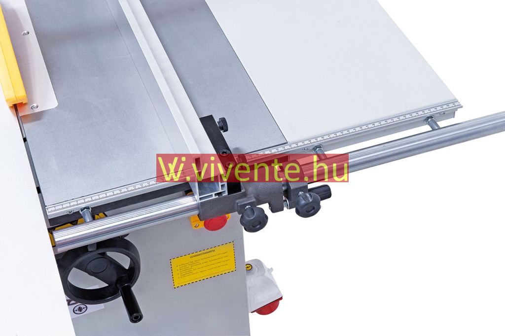 Alumínium hosszanti-ütköző finom-beállítással és precíz kerekrúd-vezetővel (30 mm).