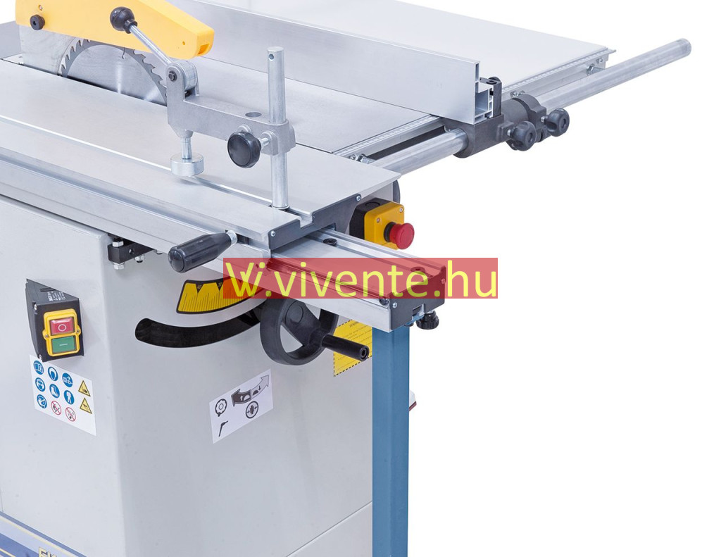A fűrészlap ferde-állítása 45°-ig, skála szerint kézikerék segítségével