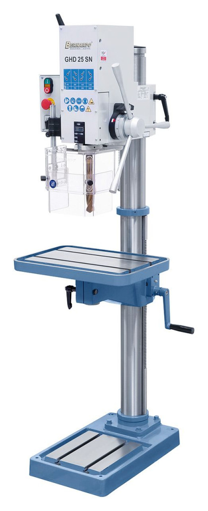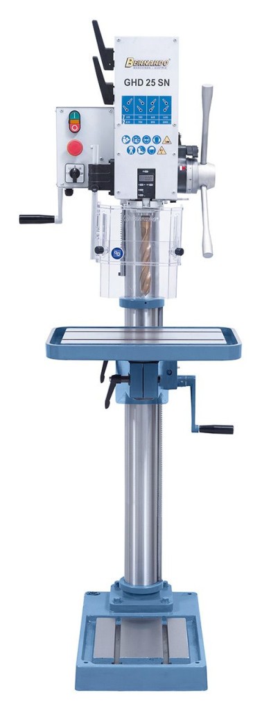 Az erősteljesítményű hajtóműves-oszlopfúrógép GHD 25 SN kitűnik robosztus és vibrálásmentes felépítése által.