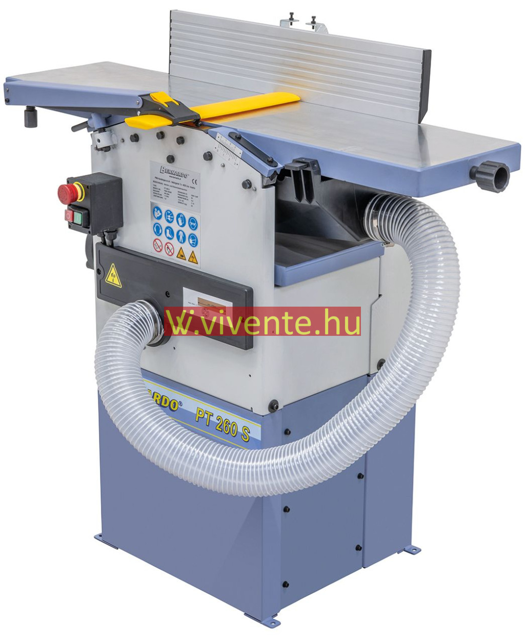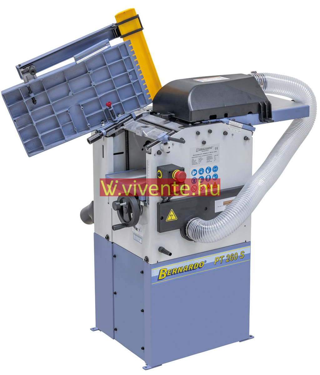 A PT 260 S kötő- és vastaggyaluval optimális ár-teljesítmény arányt kínál költséghatékony készítőknek köszönhetően a szabványos tartozékok széles választékának (integrált szívó, forgácszsák, gyalukés beállító stb.).