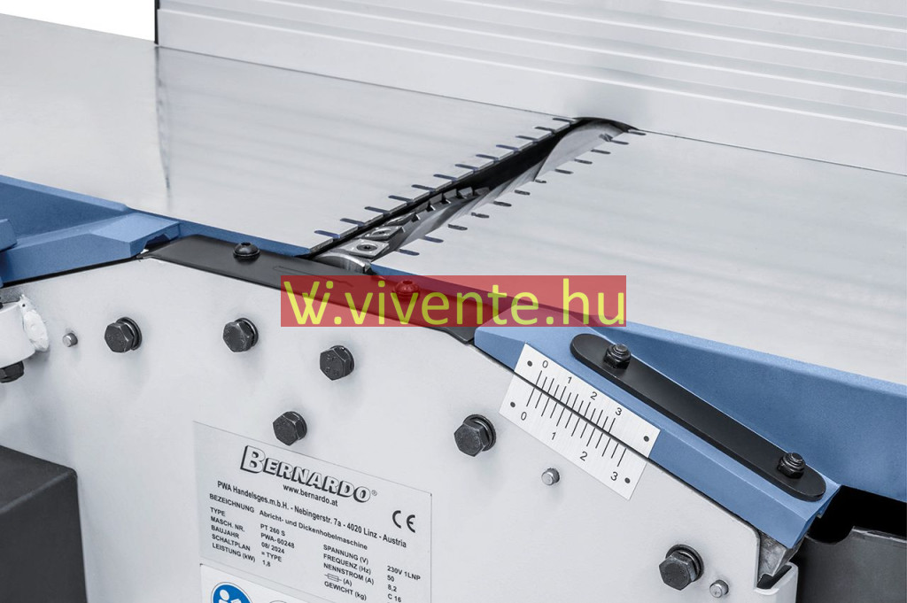A spirális késgyalútengely a csökkentett zajszennyezés és az optimális gyalulási eredmény érdekében ennek a gépnek újabb pluszja.