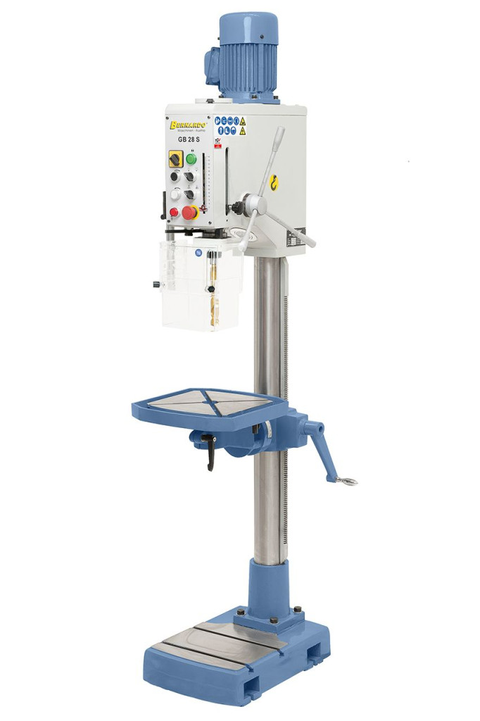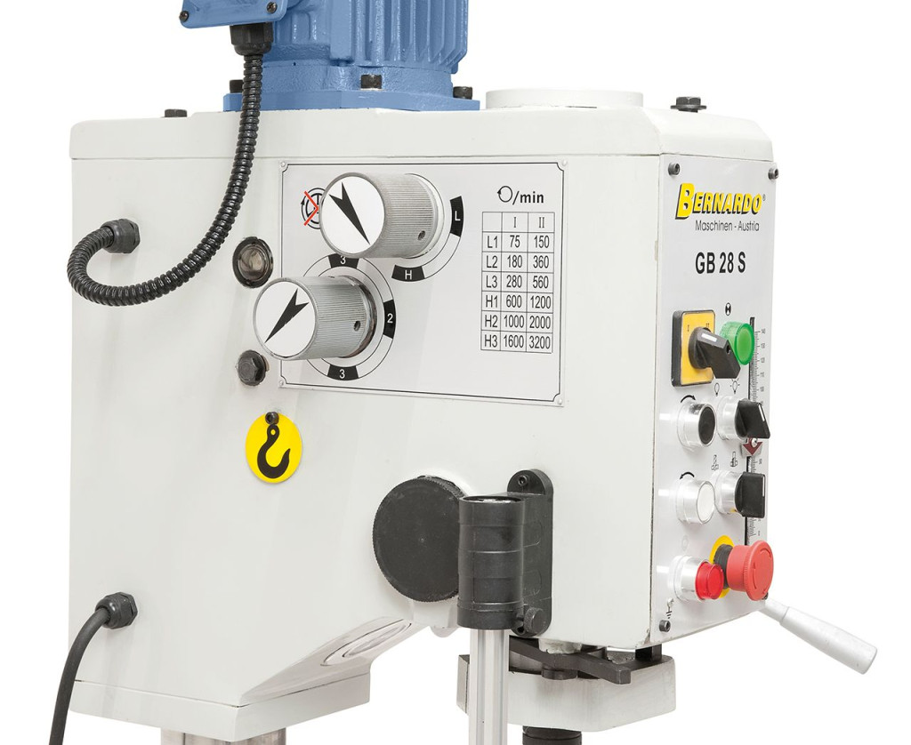 Az erős teljesítményű hajtóműves oszlopfúrógép GB 28 S kitűnik a robusztus és vibrációmentes felépítési módja által.