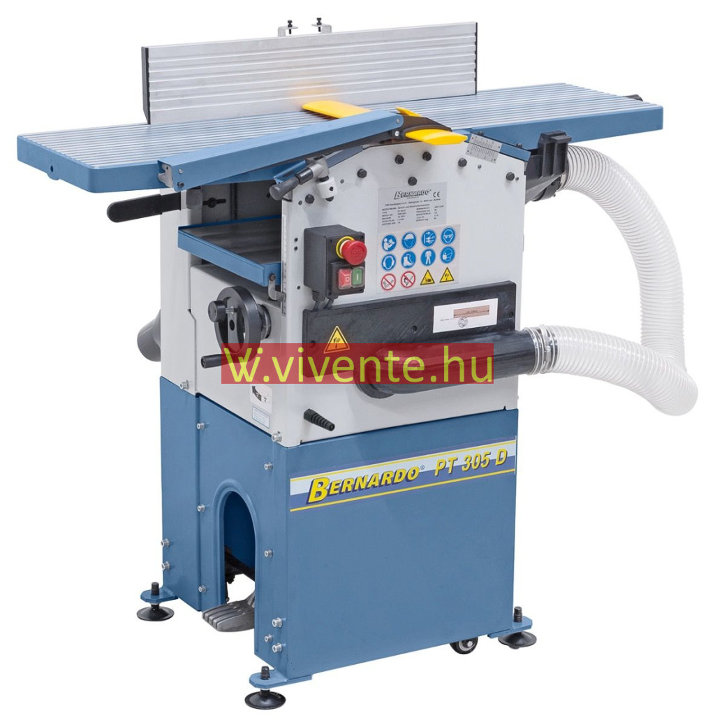 Az egyengető és vastagsági gyalugép PT 305 D az átfogó standard-tartozékok által (integrált elszívó, forgácszsák, gyalukés-beállítómérő, …) optimális ár-teljesítmény arányt kínál költségtudatos barkácsolók részére.