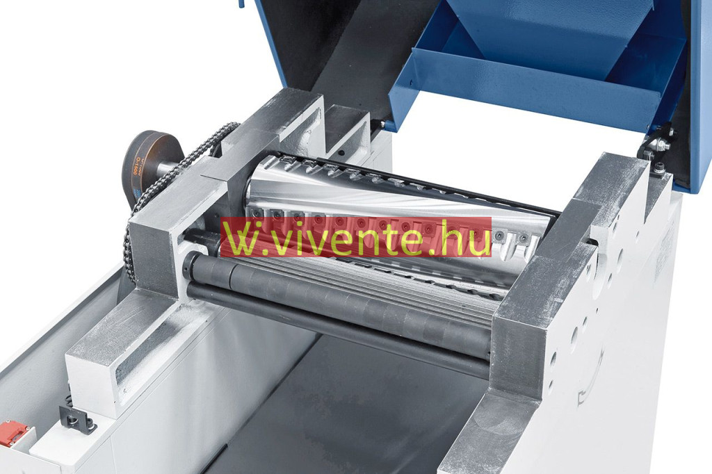 A zajterhelés csökkentése (kb. 50%) az alapfelszereltségben hozzátartozó spirálkéses gyalutengelynek köszönhetően, és akár 20-szoros vágóél-élettartam (a négyszeresen használható HM fordítható lapkák révén)