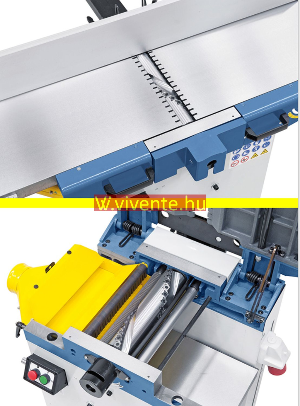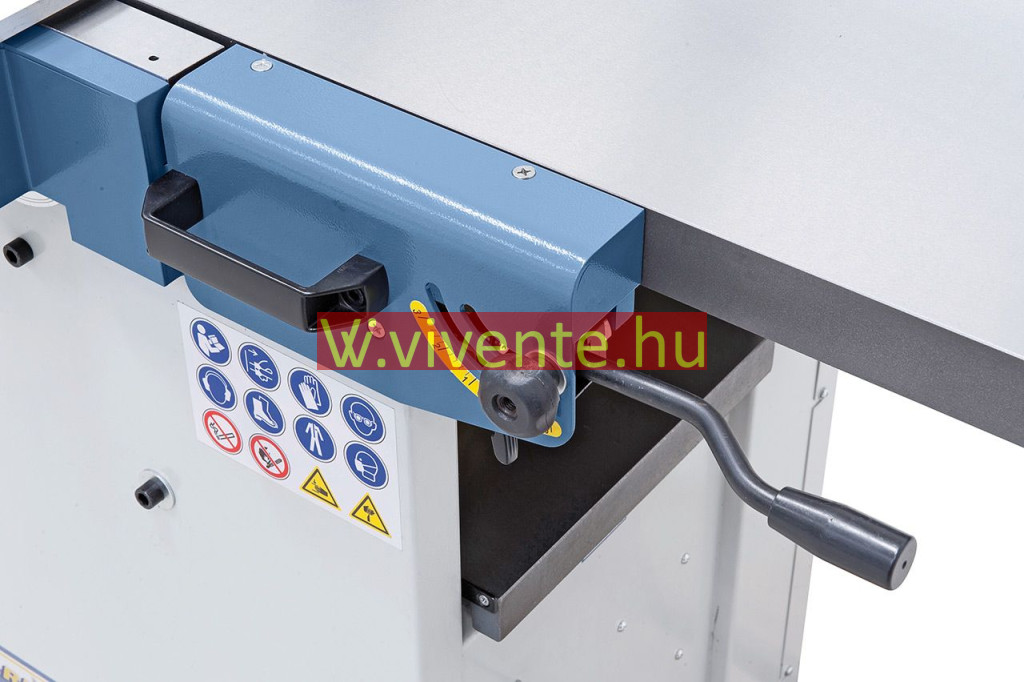 Számos védőberendezés: Be-Ki-kapcsoló alsófeszültség-kioldóval, gyalutengelyvédelem CE szerint, végálláskapcsoló a véletlen bekapcsolás ellen