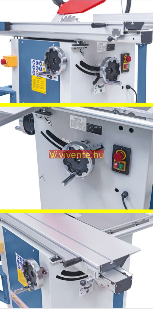 A fűrészlap ferde-állítása 45°-ig, skála szerint kézikerék segítségével