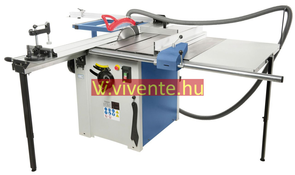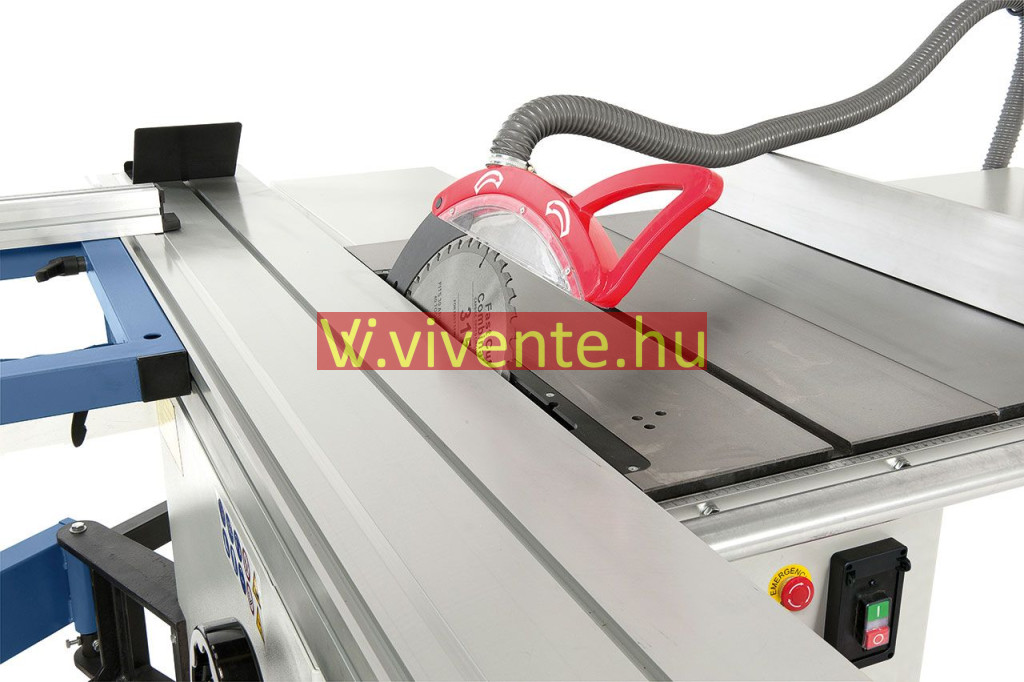 Kihúzható teleszkópos ütköző (2260 mm-ig) a kinyúló-asztalra előre és hátra felszerelhető, fokozatmentesen elfordítható 90° -tól 45° -ig