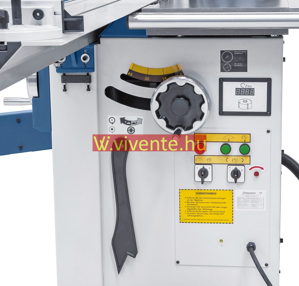 Sorozatszerűen 2 motorral, egy 315 mm-es fűrészlappal 100 mm vágási magasságig, valamint egy előmetsző-aggregáttal felszereltek bevont lap-munkaanyagok szakadásmentes megmunkálása érdekében.