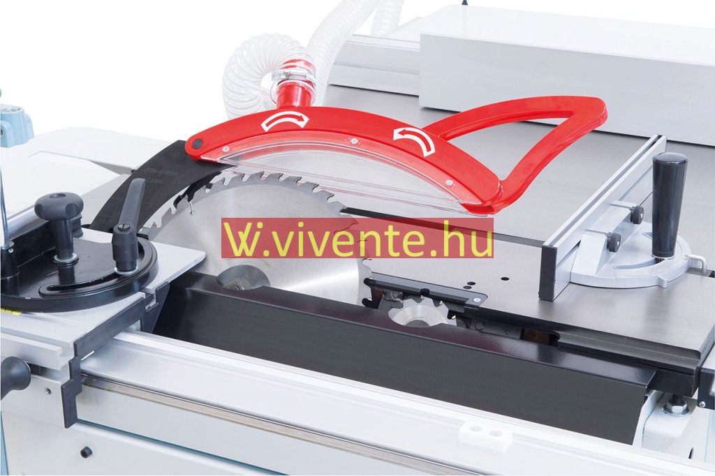 Sorozatszerűen felszerelt 3,0 kW motorral és 315 mm átmérőjű fűrészlappal max. 100 mm vágási magassághoz, valamint előmetsző-aggregáttal a bevont lap-munkaanyagok szakadásmentes megmunkálása érdekében.