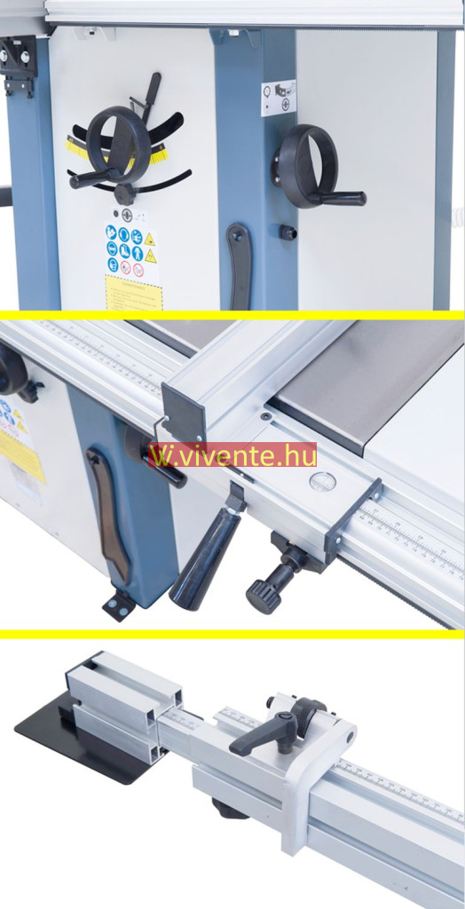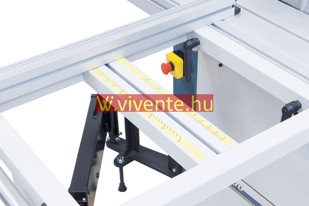 Kihúzható teleszkópos ütköző (2260 mm-ig) a kinyúló-asztalra előre és hátra felszerelhető, fokozatmentesen elfordítható 90° -tól 45° -ig
