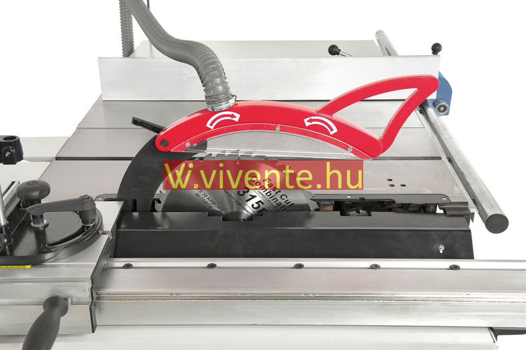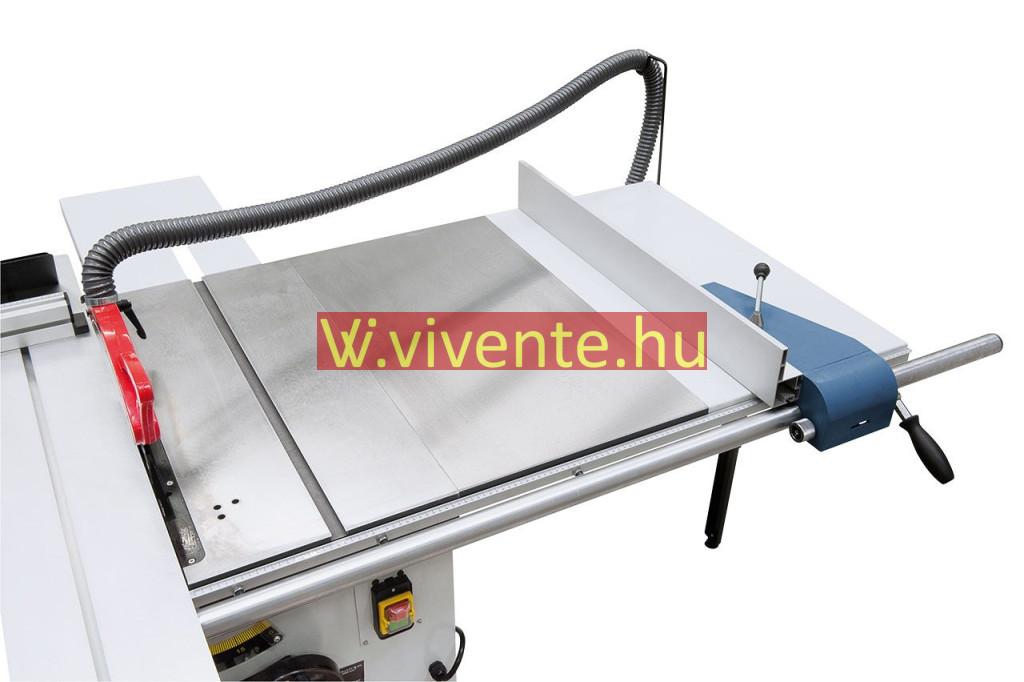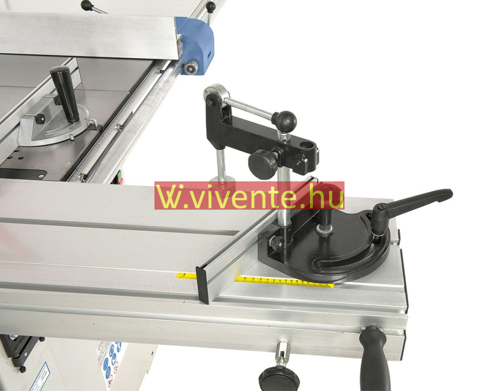 Kihúzható teleszkópos ütköző (2260 mm-ig) a kinyúló-asztalra előre és hátra felszerelhető, fokozatmentesen elfordítható 90° -tól 45° -ig