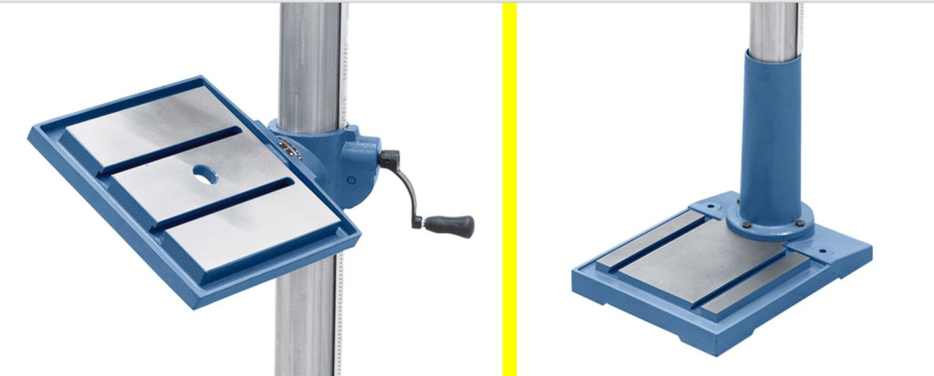 Fúróasztal elfordítható (± 45°), magasságbeállítás a fogasléc által