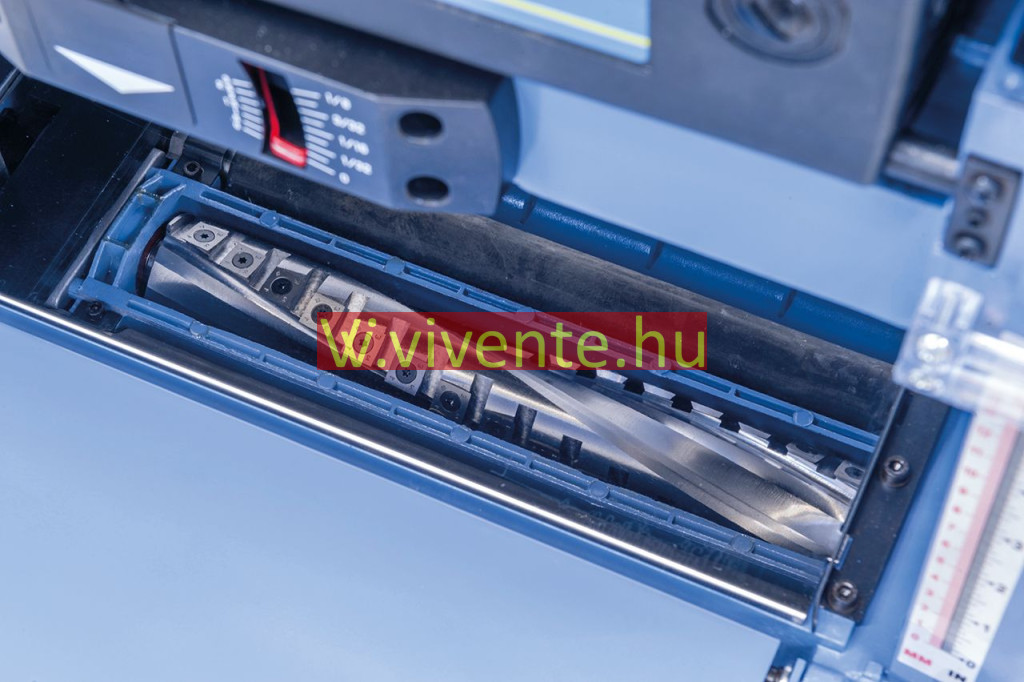 A zajterhelés csökkentése (kb. 50%) az alapfelszereltségben hozzátartozó spirálkéses gyalutengelynek köszönhetően, és akár 20-szoros vágóél-élettartam (a négyszeresen használható HM fordítható lapkák révén)