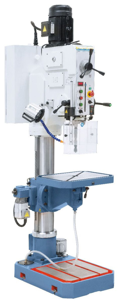 A hajtóműves fúrógép GB 35 THS a mellékidők csökkentése érdekében sorozatszerűen egy motorikus asztalemelővel van felszerelve.