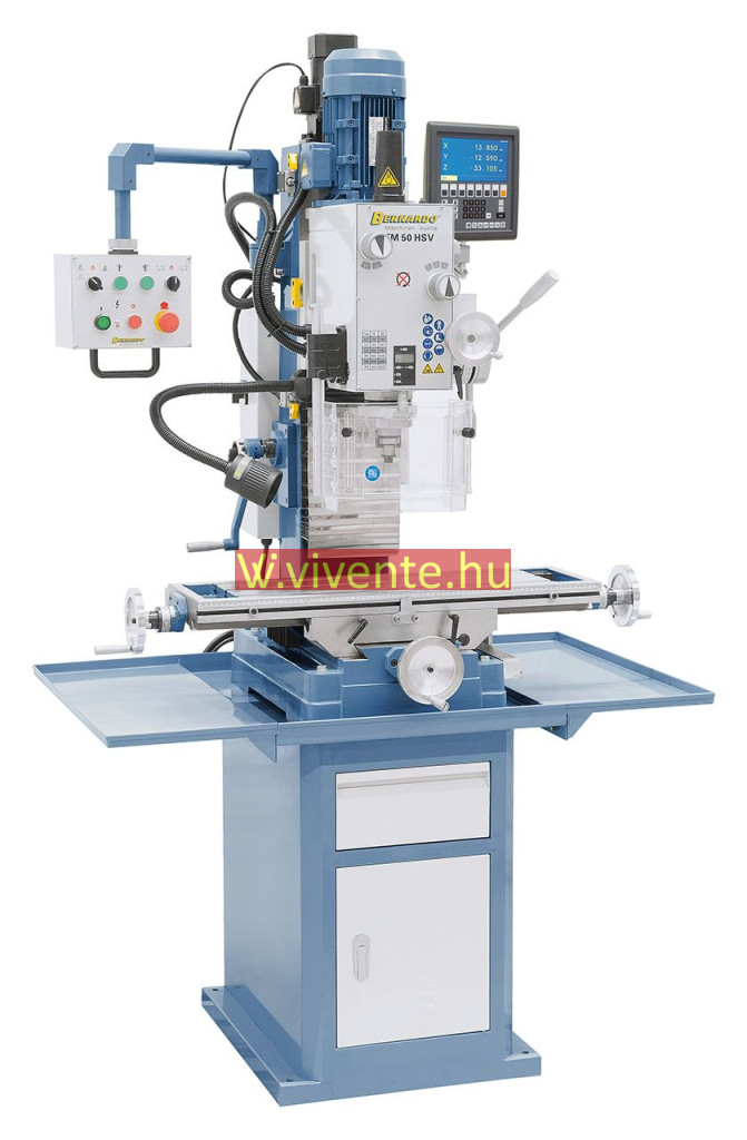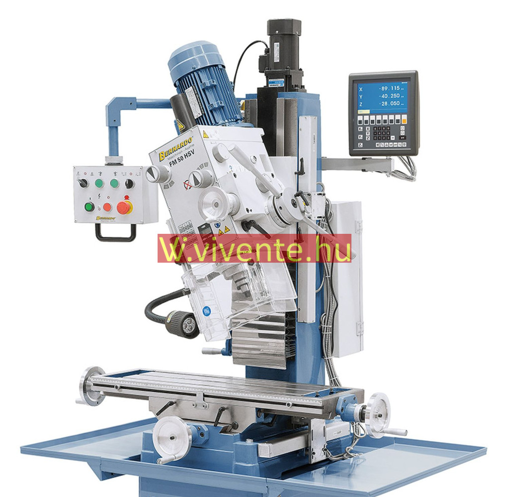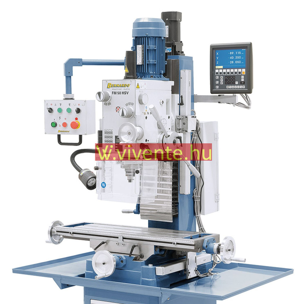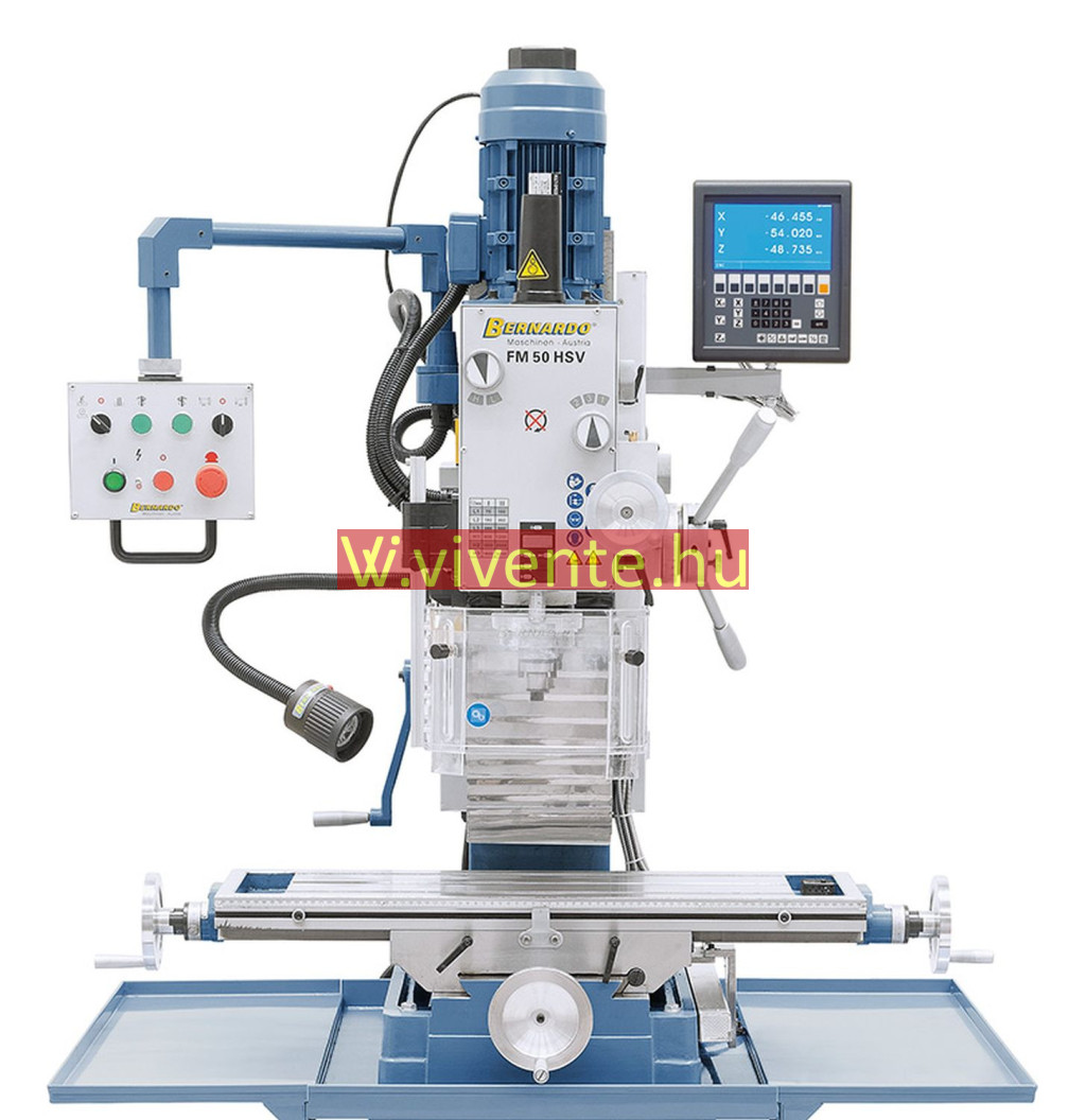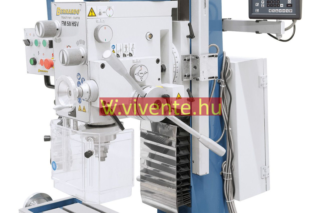Az FM 50 HSV fúró-marógép a marófej motoros magasságbeállítása, a digitális orsólöket mutató valamint az automatikus orsó előretolás által magas fokú kezelési kényelmet biztosít.