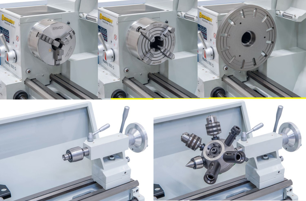 A Hobby 800 G esztergagép alapfelszereltségéhez tartozik egy ólomcsavar menetvágáshoz, ill. az automatikus hosszanti- és haránt előtoláshoz.