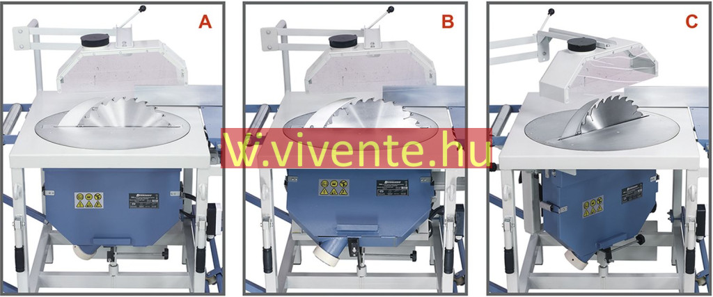 Forgótányér 90° -ig, valamint fűrészlap 45° -ig egyidejűleg beállítható