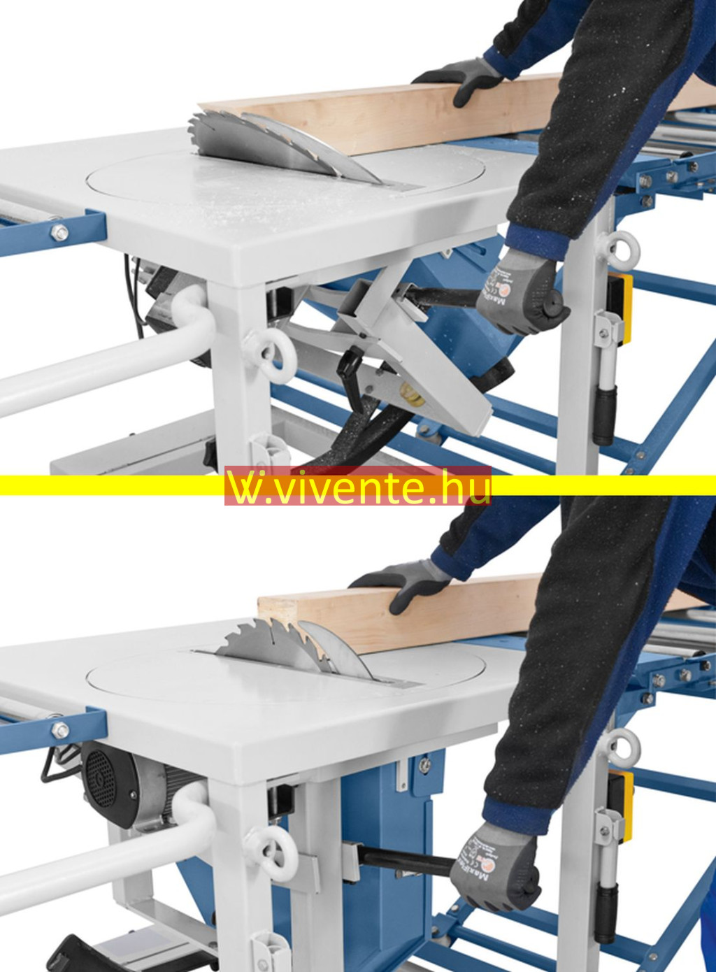 Fejező vágások emelőkar segítségével végezhetők, a fűrészaggregát lentről felfelé vezetendő
