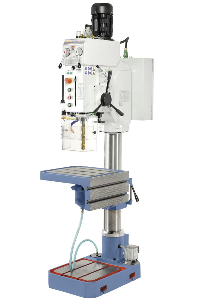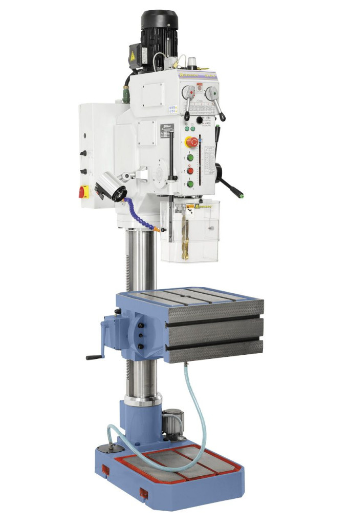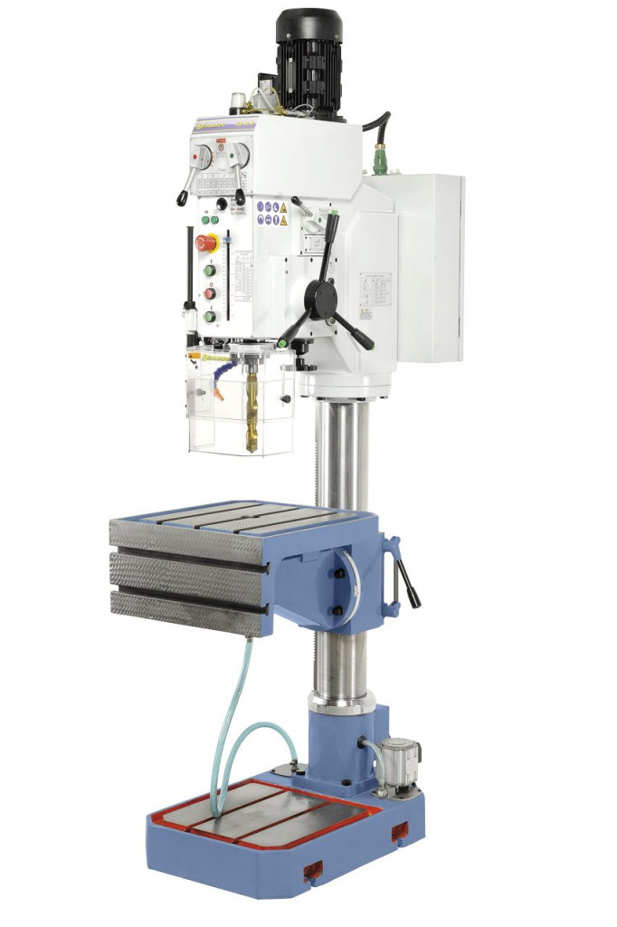A hajtóműves-oszlopfúrógép robusztus kivitelezése és nagy teljesítőképessége által szerelőüzemek számára, valamint ipari gyártásban is alkalmazható.