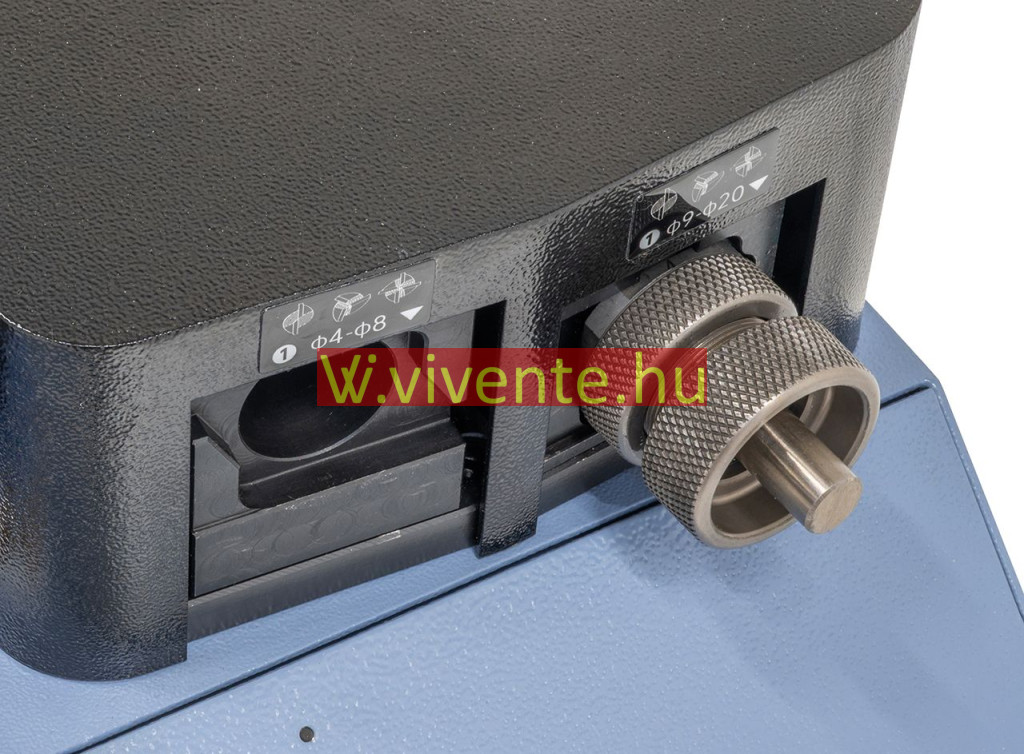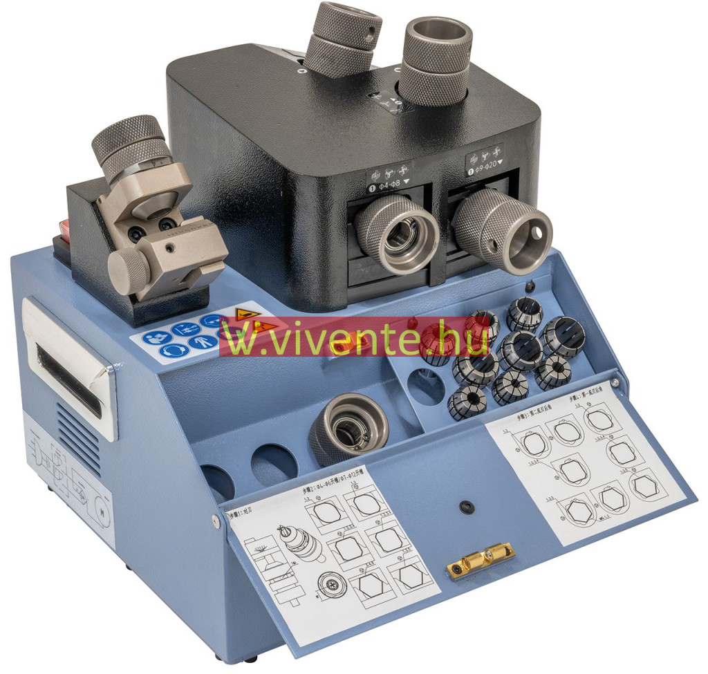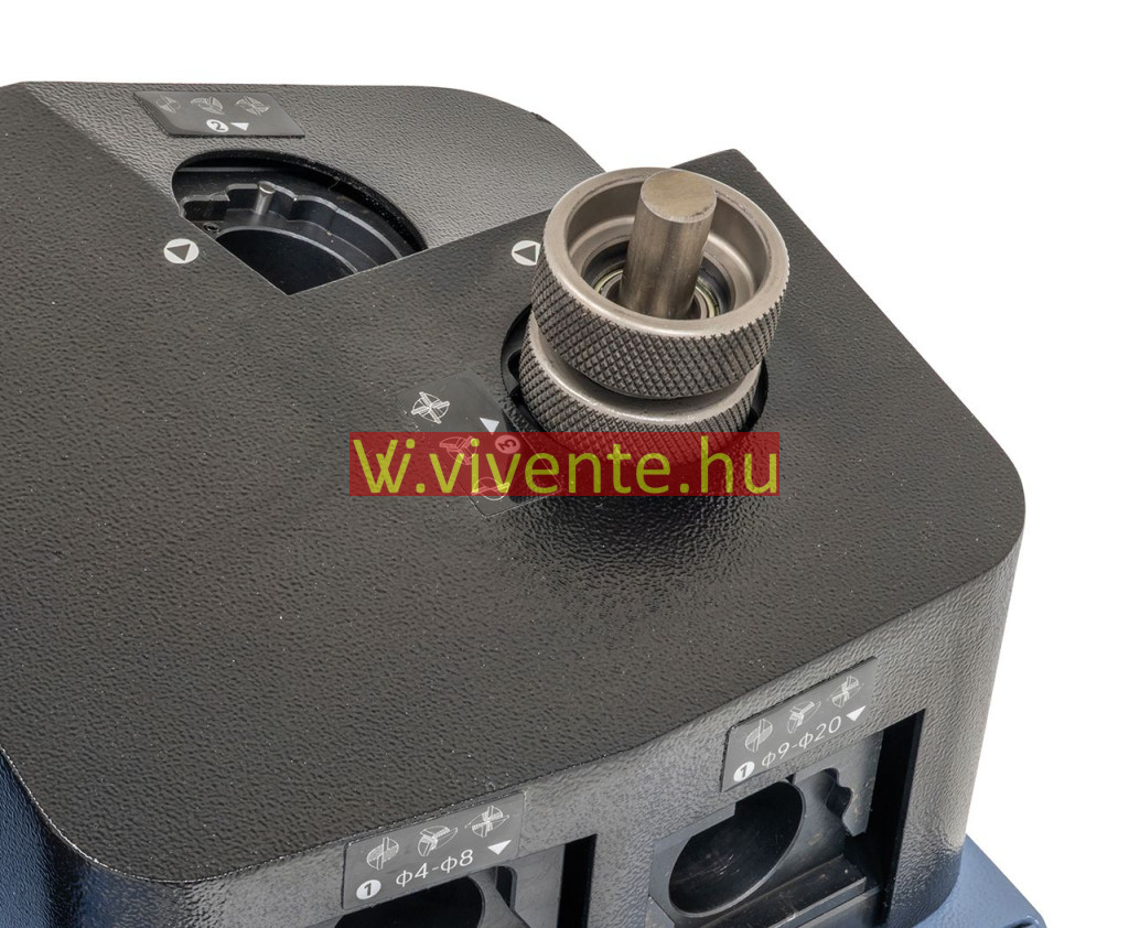 A 0° és 5° között állítható csúcsszög miatt ez a modell univerzálisan használható 2-es, 3-as és 4-es vágóélű maróhoz.