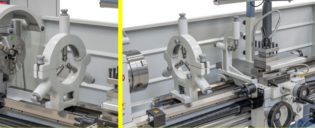 Már az alapfelszerelés minden fontos tartozékot tartalmaz (3-pofás tokmány, lünetták, váltókerekek, 3-tengelyes-helyzetmutató,….), amik által ez a gép univerzálisan alkalmazható.