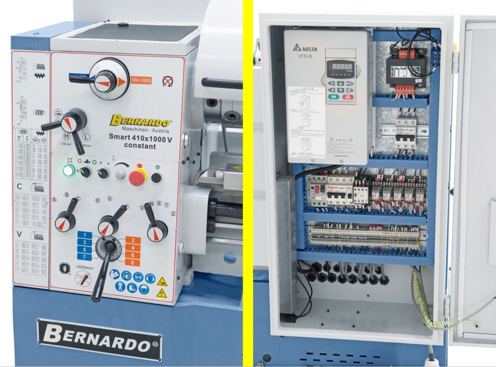 A vezér- és vonóorsós esztergagép Smart 410 V-constant igazán meggyőző a stabil konstrukciója és egyszerű kezelhetősége által.