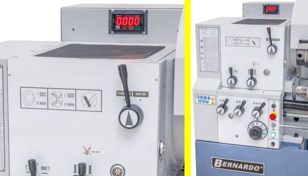 A fordulatszám- és előretolási beállítás egyszerű felépítésű, könnyű menetű és precízen kapcsolható