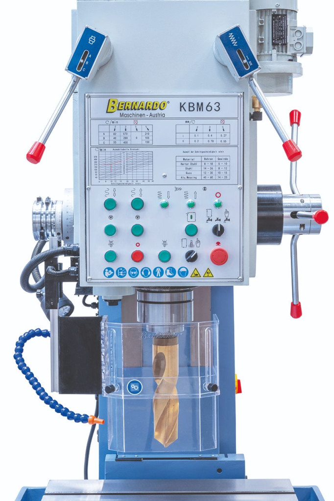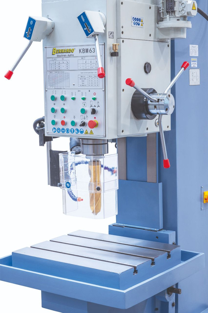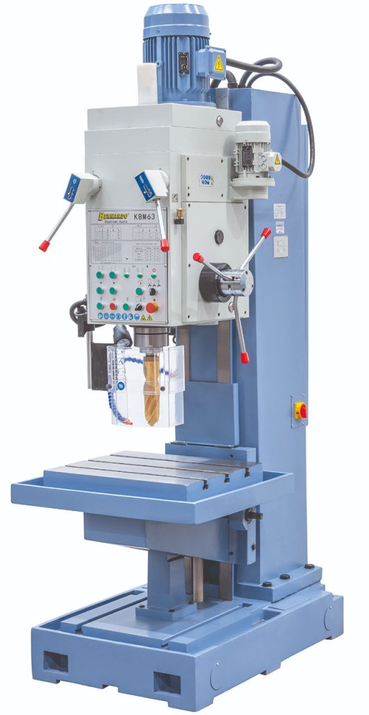 A KBM 50 szekrényállványos-fúrógép fúrási, dörzs- és menetvágási munkákra egyedi és sorozatgyártásnál is alkalmas.