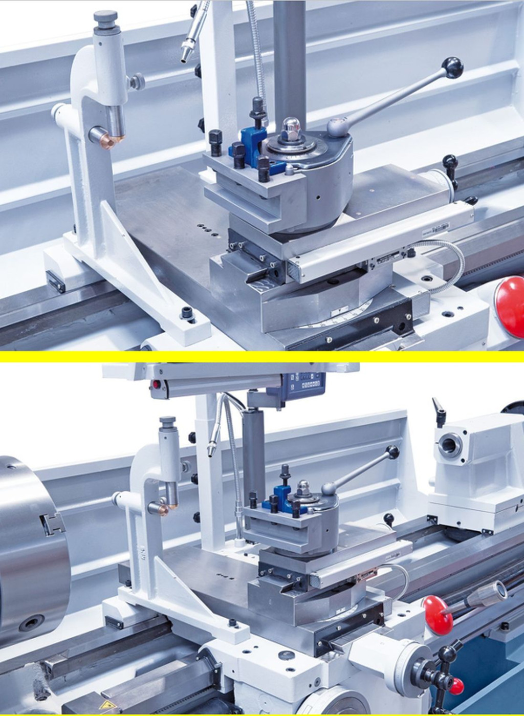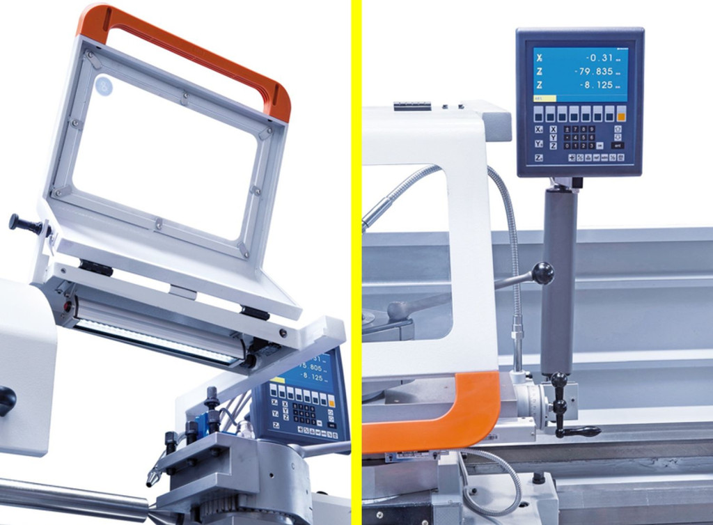 Már az alapfelszerelés tartalmaz minden fontos tartozékot (3-pofás tokmány, lünetták, váltókerekek, 3-tengelyes helyzetmutató, gyorsváltó-szerszámtartó), amik által ez a gép univerzálisan alkalmazható.