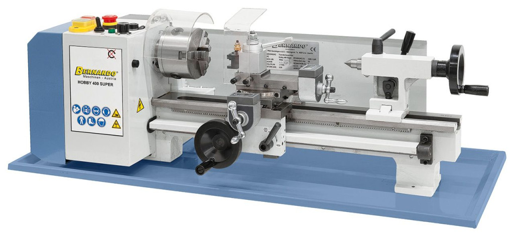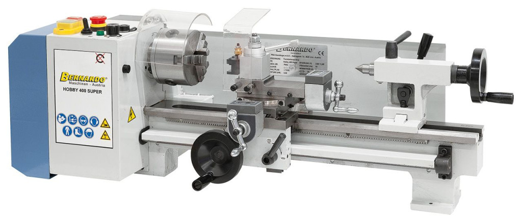 Az asztali esztergagép Hobby 400 Super biztosíja a kefe nélküli egyenáramú motorja által az orsó magas forgási nyugalmát valamint egyenletes meghajtását.