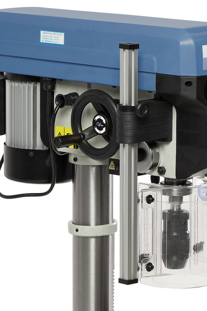 Elfordítható fúróasztal (± 45°), magasság beállítása fogasléc által