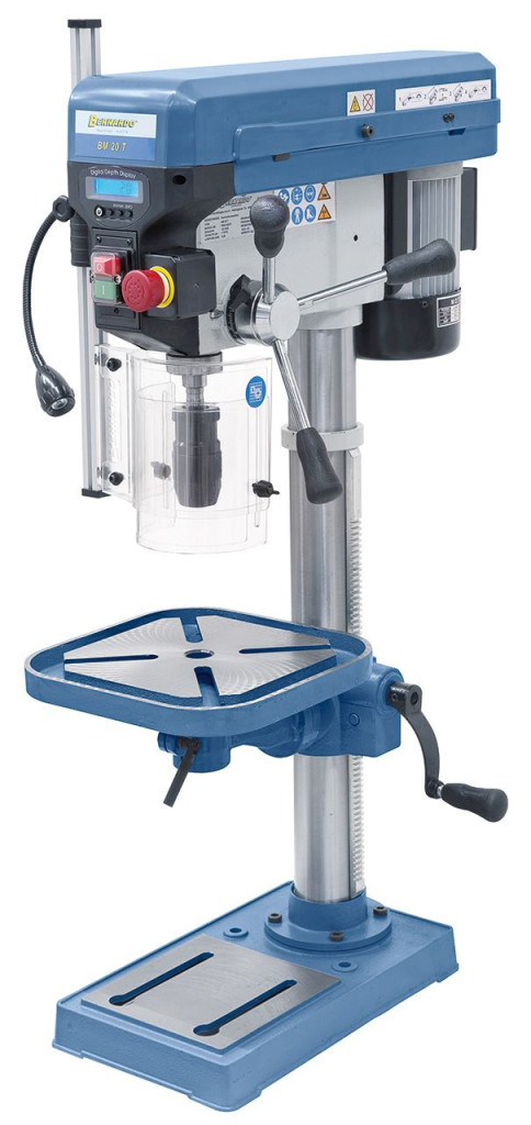 A szolid, ékszíjmeghajtású fúrógép BM 20 T a magas forgatónyomaték által kiemelkedik alacsony fordulatszám esetén is.
