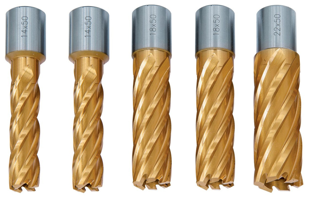 2 db 14 mm, 2 db 18 mm és1 db 22 mm-es HSS-magfúró CDL, TiN-bevonattal.